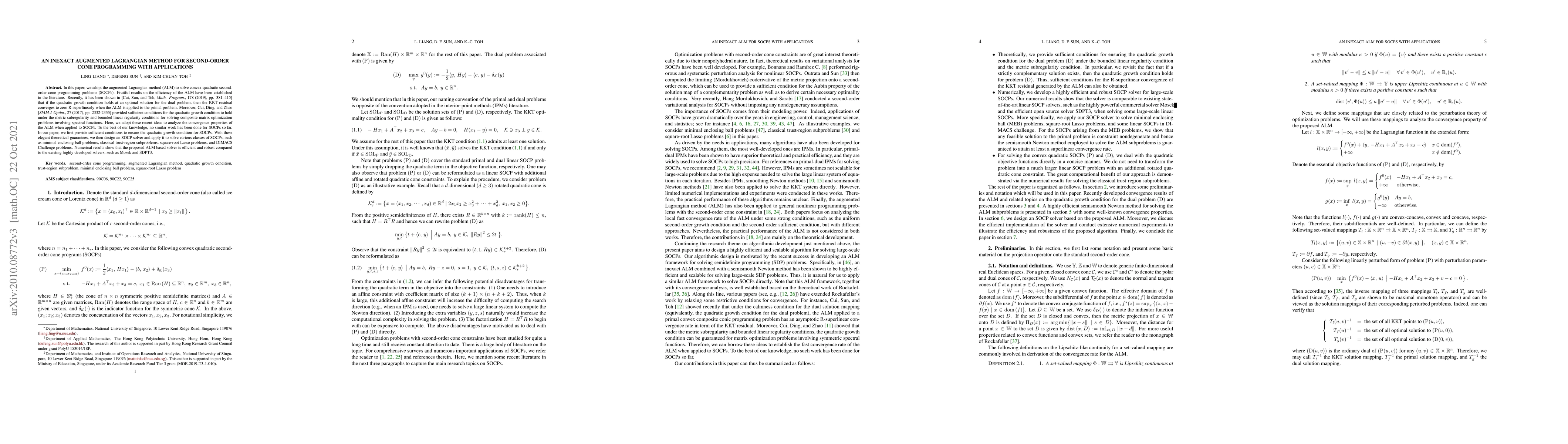 This paper proposes an inexact augmented Lagrangian method for solving convex quadratic second-order cone programming problems (SOCPs). The authors provide sufficient conditions for the quadratic growth condition, enabling the method to converge R-superlinearly, and demonstrate its efficiency through applications to various SOCP classes, outperforming existing solvers like Mosek and SDPT3.