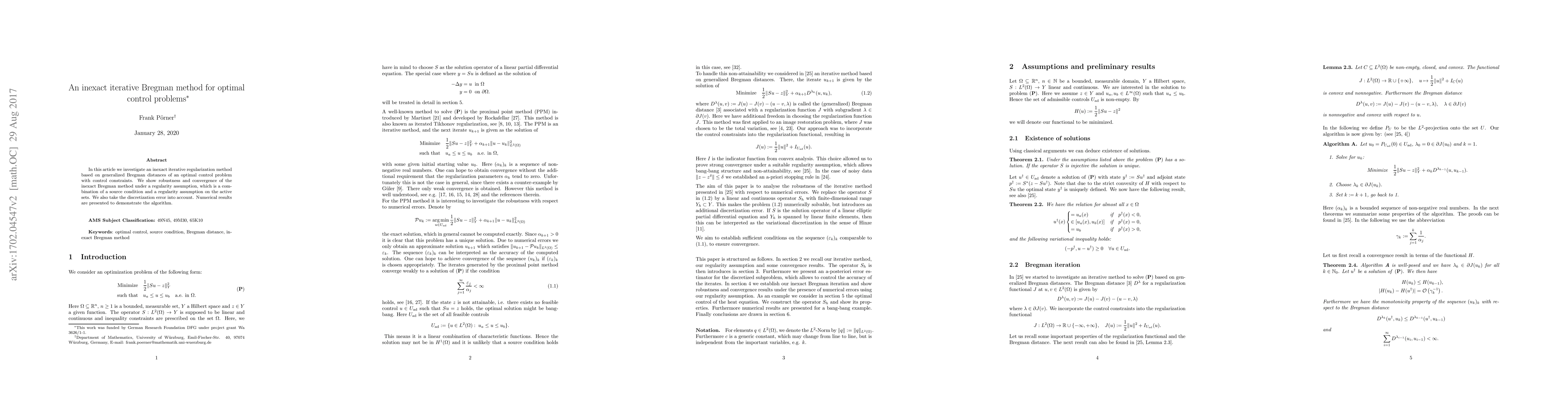 This paper proposes an inexact iterative Bregman method for solving optimal control problems with control constraints, demonstrating its robustness and convergence under specific regularity conditions. Numerical results validate the effectiveness of the proposed algorithm.