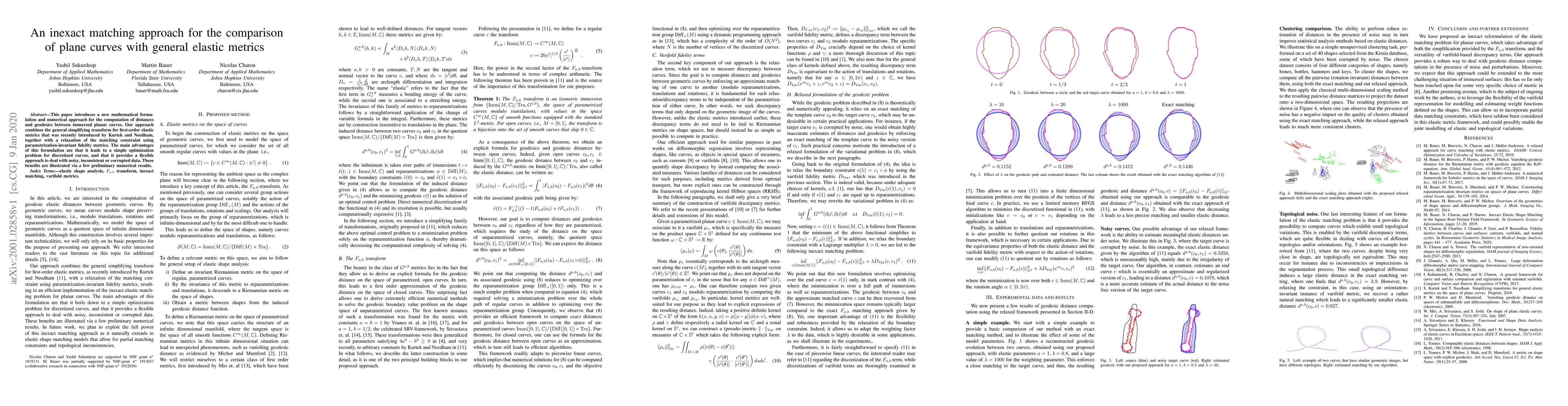 This paper introduces a new mathematical formulation and numerical approach for the computation of distances and geodesics between immersed planar curves. Our approach combines the general simplifying transform for first-order elastic metrics that was recently introduced by Kurtek and Needham, together with a relaxation of the matching constraint using parametrization-invariant fidelity metrics. The main advantages of this formulation are that it leads to a simple optimization problem for discretized curves, and that it provides a flexible approach to deal with noisy, inconsistent or corrupted data. These benefits are illustrated via a few preliminary numerical results.