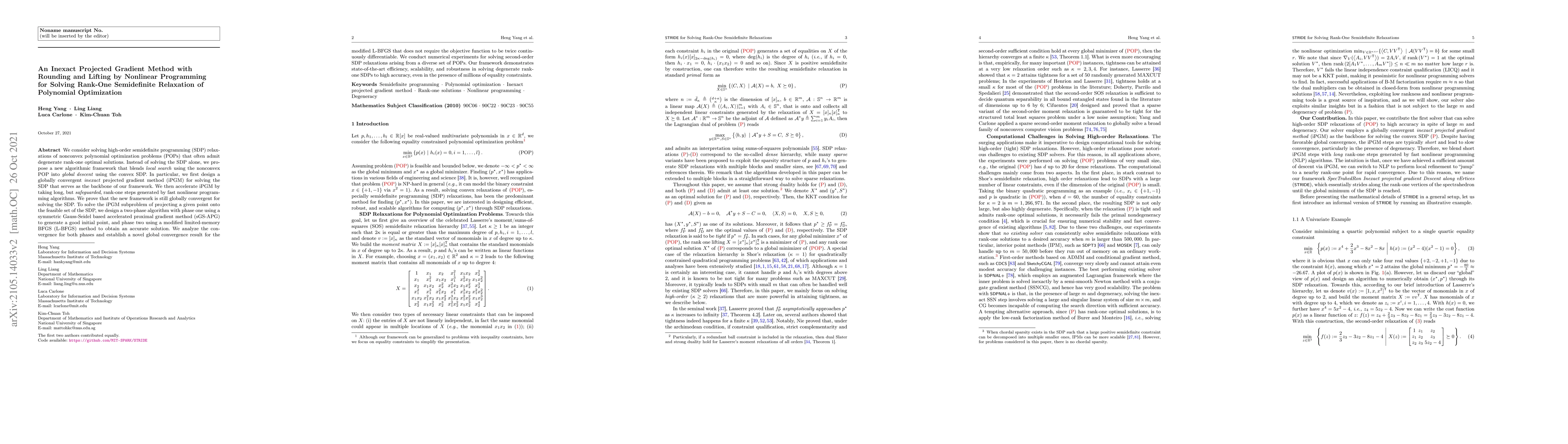 We consider solving high-order semidefinite programming (SDP) relaxations of nonconvex polynomial optimization problems (POPs) that often admit degenerate rank-one optimal solutions. Instead of solving the SDP alone, we propose a new algorithmic framework that blends local search using the nonconvex POP into global descent using the convex SDP. In particular, we first design a globally convergent inexact projected gradient method (iPGM) for solving the SDP that serves as the backbone of our framework. We then accelerate iPGM by taking long, but safeguarded, rank-one steps generated by fast nonlinear programming algorithms. We prove that the new framework is still globally convergent for solving the SDP. To solve the iPGM subproblem of projecting a given point onto the feasible set of the SDP, we design a two-phase algorithm with phase one using a symmetric Gauss-Seidel based accelerated proximal gradient method (sGS-APG) to generate a good initial point, and phase two using a modified limited-memory BFGS (L-BFGS) method to obtain an accurate solution. We analyze the convergence for both phases and establish a novel global convergence result for the modified L-BFGS that does not require the objective function to be twice continuously differentiable. We conduct numerical experiments for solving second-order SDP relaxations arising from a diverse set of POPs. Our framework demonstrates state-of-the-art efficiency, scalability, and robustness in solving degenerate rank-one SDPs to high accuracy, even in the presence of millions of equality constraints.