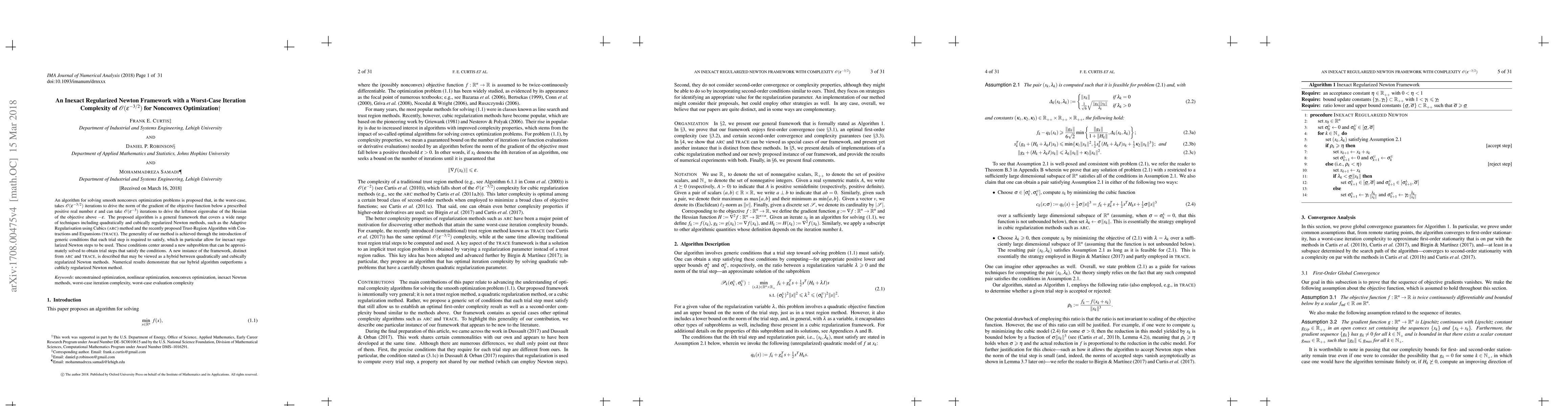 An algorithm for solving smooth nonconvex optimization problems is proposed that, in the worst-case, takes $\mathcal{O}(\epsilon^{-3/2})$ iterations to drive the norm of the gradient of the objective function below a prescribed positive real number $\epsilon$ and can take $\mathcal{O}(\epsilon^{-3})$ iterations to drive the leftmost eigenvalue of the Hessian of the objective above $-\epsilon$. The proposed algorithm is a general framework that covers a wide range of techniques including quadratically and cubically regularized Newton methods, such as the Adaptive Regularisation using Cubics (ARC) method and the recently proposed Trust-Region Algorithm with Contractions and Expansions (TRACE). The generality of our method is achieved through the introduction of generic conditions that each trial step is required to satisfy, which in particular allow for inexact regularized Newton steps to be used. These conditions center around a new subproblem that can be approximately solved to obtain trial steps that satisfy the conditions. A new instance of the framework, distinct from ARC and TRACE, is described that may be viewed as a hybrid between quadratically and cubically regularized Newton methods. Numerical results demonstrate that our hybrid algorithm outperforms a cublicly regularized Newton method.