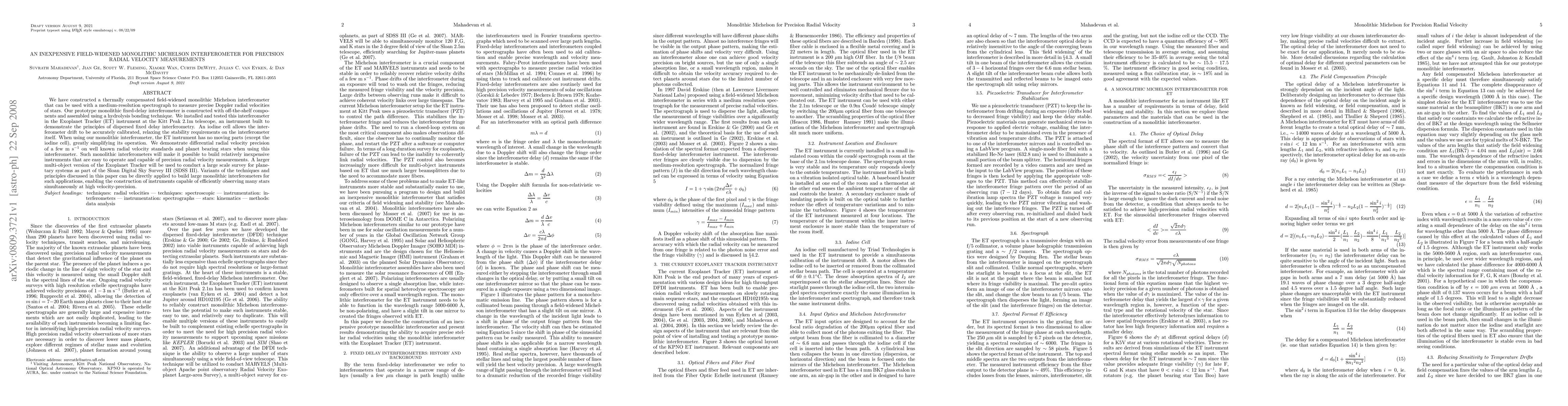 This paper describes a cost-effective, field-widened monolithic Michelson interferometer designed for precise Doppler radial velocity measurements of stars. The interferometer, built with off-the-shelf components and tested on the Exoplanet Tracker instrument, achieves differential radial velocity precision of a few m/s, facilitating large-scale surveys for planetary systems.