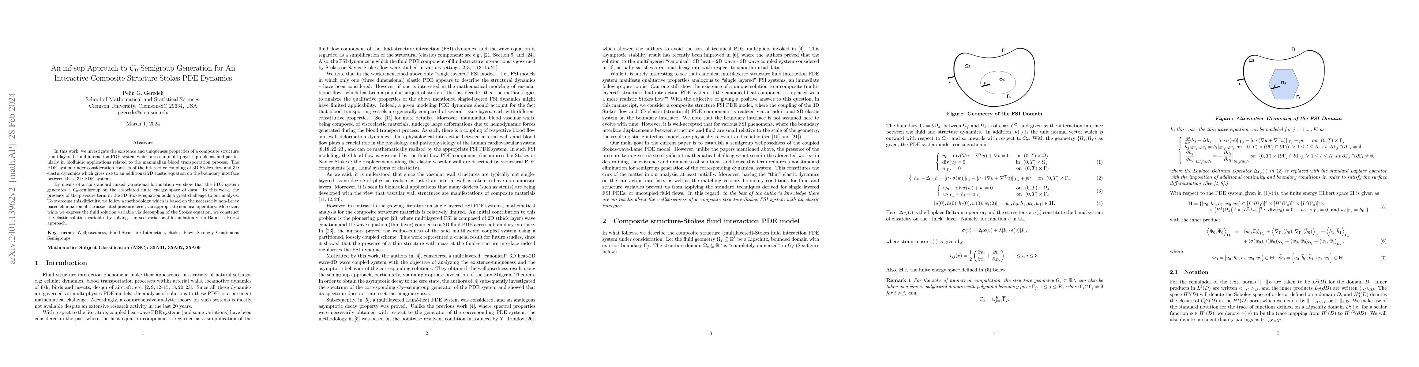 This paper examines the existence and uniqueness of a composite fluid-structure PDE system for multi-physics biofluidic applications, showing it generates a $C_0$-semigroup. The authors address the challenge of the pressure term in the Stokes equation by employing nonlocal operators and a Babuska-Brezzi approach for the elastic dynamics.