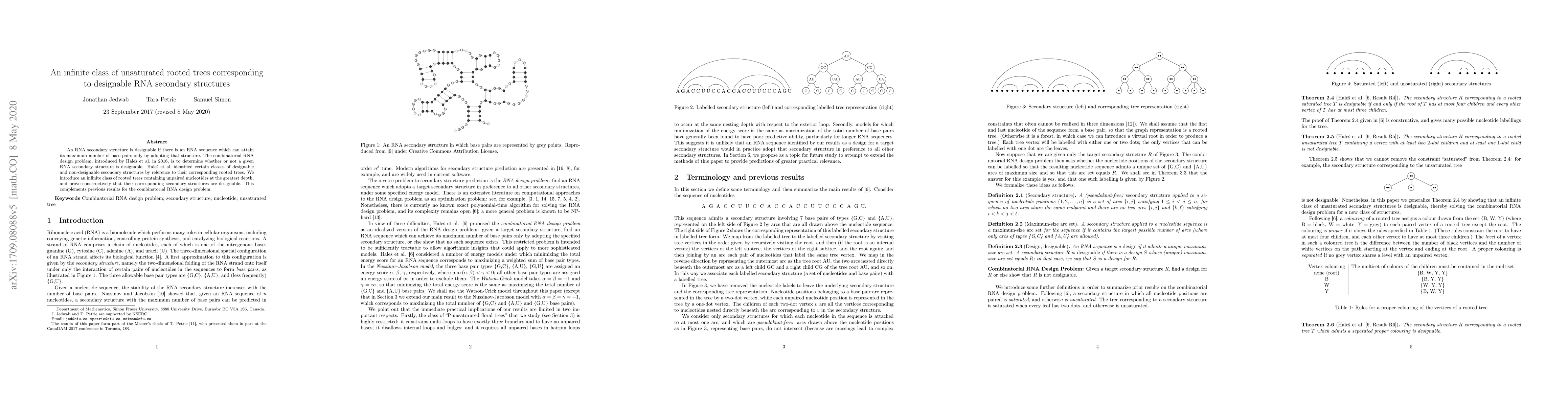 This paper introduces an infinite class of unsaturated rooted trees that correspond to designable RNA secondary structures, where designability means the RNA sequence can achieve its maximum base pairs only by adopting that structure. The authors prove constructively that these trees' secondary structures are designable, complementing previous findings on the combinatorial RNA design problem.