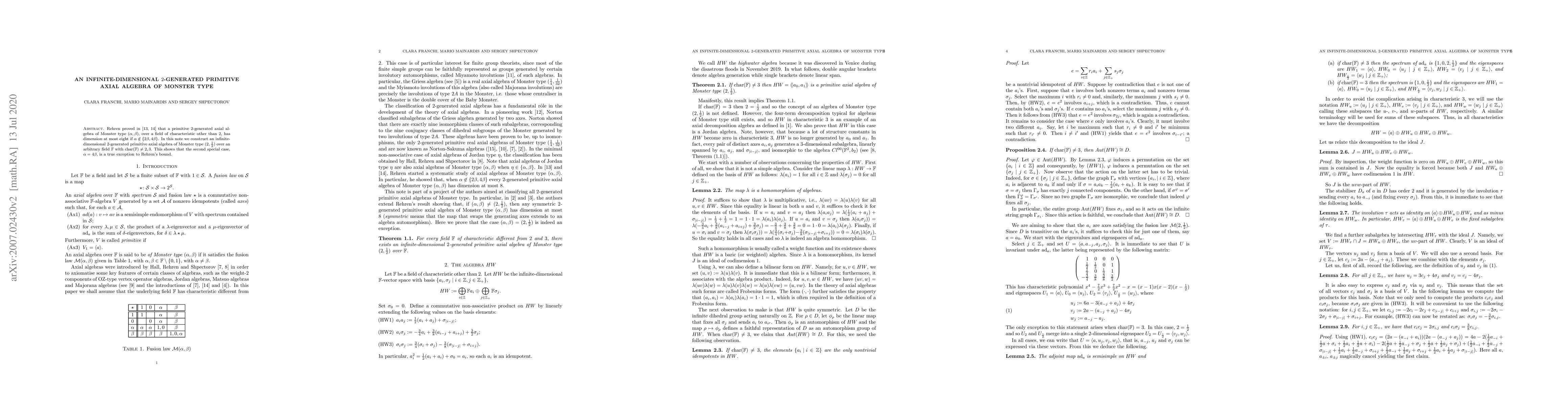 Researchers have constructed an infinite-dimensional 2-generated primitive axial algebra of Monster type $(2, rac{1}{2})$ that challenges Rehren's bound on the maximum dimension of such algebras.