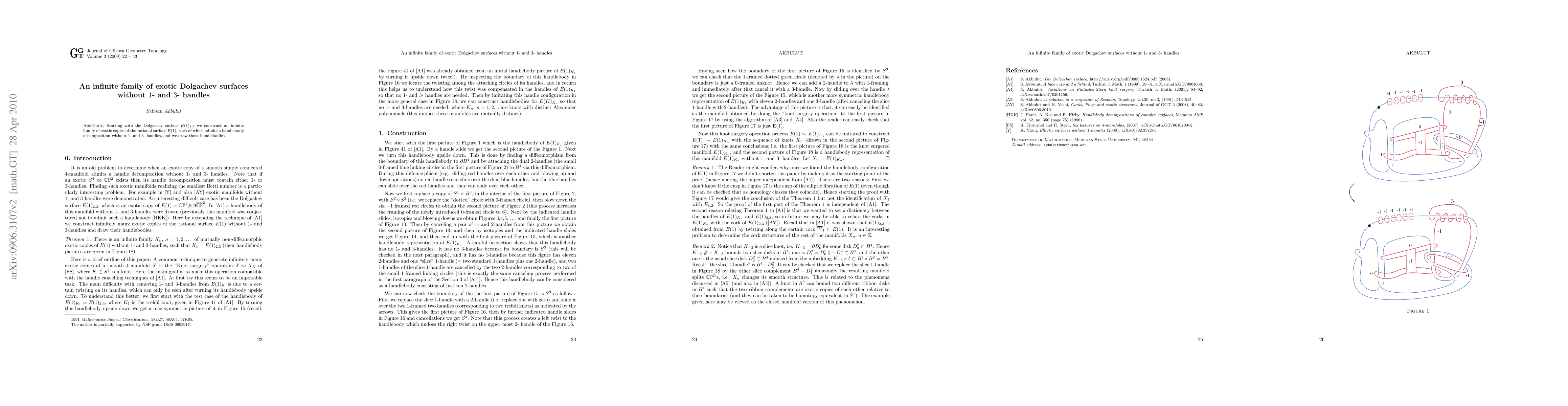 Starting with the Dolgachev surface E(1)_{2,3} we construct an infinite family of distinct exotic copies of the rational surface E(1), each of which admits a handlebody decomposition without 1- and 3- handles, and we draw these handlebodies.