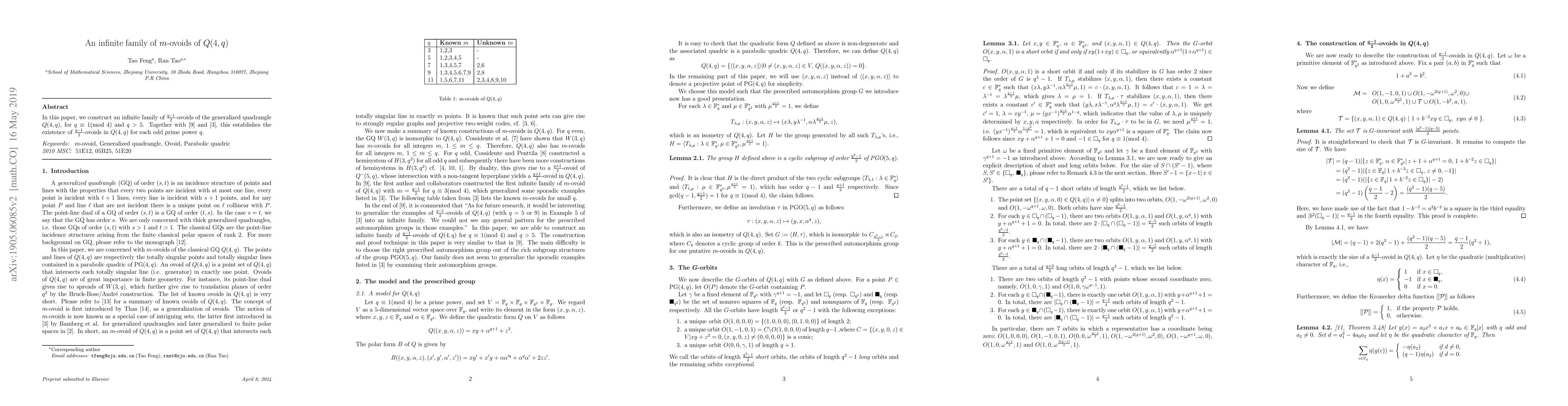 This paper constructs an infinite family of $\frac{q-1}{2}$-ovoids for $Q(4,q)$ when $q\equiv 1 (\text{mod}\ 4)$ and $q>5$, completing the existence of such ovoids for all odd prime power values of $q$. This complements previous examples and constructions.