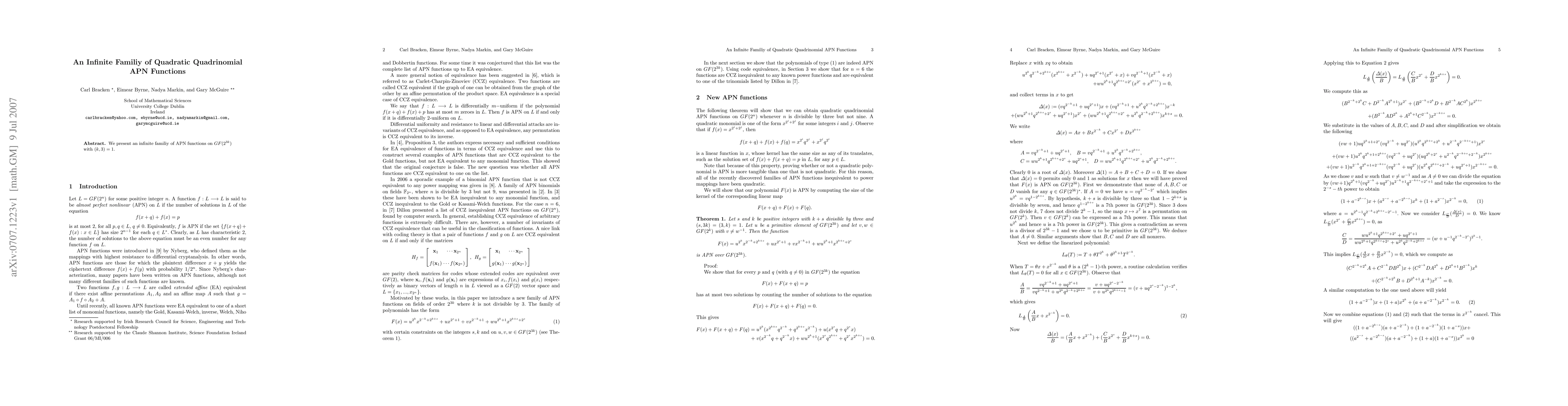 Two-line summary: This paper introduces an infinite family of quadratic quadrinomial almost perfect nonlinear (APN) functions defined on a finite field with dimension divisible by 3 over GF(2). The construction provides new insights into the structure and properties of these functions.