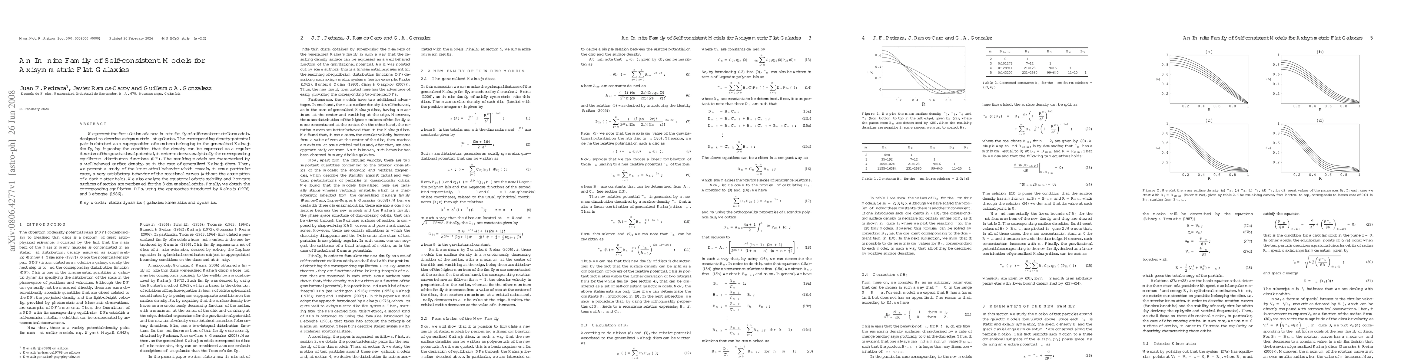 This paper introduces an infinite family of self-consistent stellar models for axisymmetric flat galaxies, derived from a superposition of generalized Kalnajs models, and analyzes their kinematical behavior, revealing rotational curves that do not require dark matter halos. The study also examines orbit stability and equilibrium distribution functions.