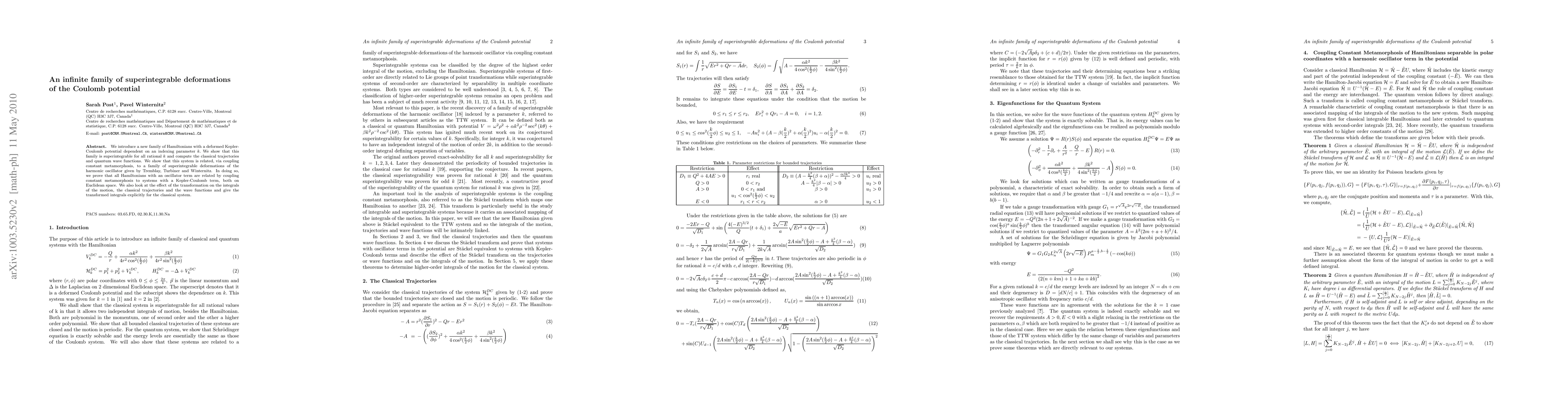 We introduce a new family of Hamiltonians with a deformed Kepler- Coulomb potential dependent on an indexing parameter k. We show that this family is superintegrable for all rational k and compute the classical trajectories and quantum wave functions. We show that this system is related, via coupling constant metamorphosis, to a family of superintegrable deformations of the harmonic oscillator given by Tremblay, Turbiner and Winternitz. In doing so, we prove that all Hamiltonians with an oscillator term are related by coupling constant metamorphosis to systems with a Kepler-Coulomb term, both on Euclidean space. We also look at the effect of the transformation on the integrals of the motion, the classical trajectories and the wave functions and give the transformed integrals explicitly for the classical system.