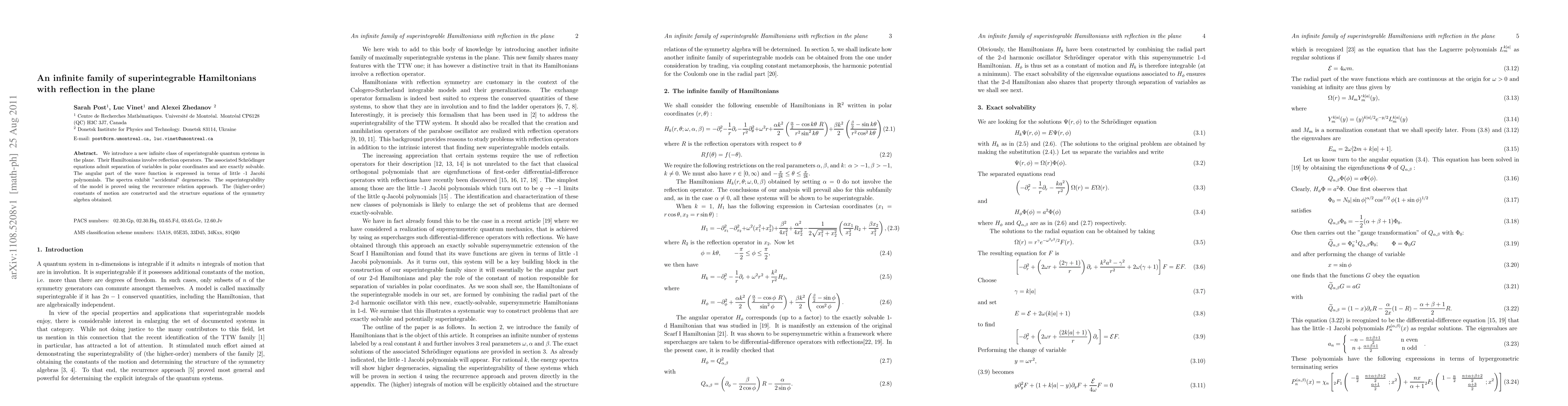 This paper presents an infinite family of superintegrable Hamiltonians in the plane featuring reflection operators, which are exactly solvable and exhibit "accidental" degeneracies. The study employs recurrence relations to prove superintegrability and constructs higher-order constants of motion.