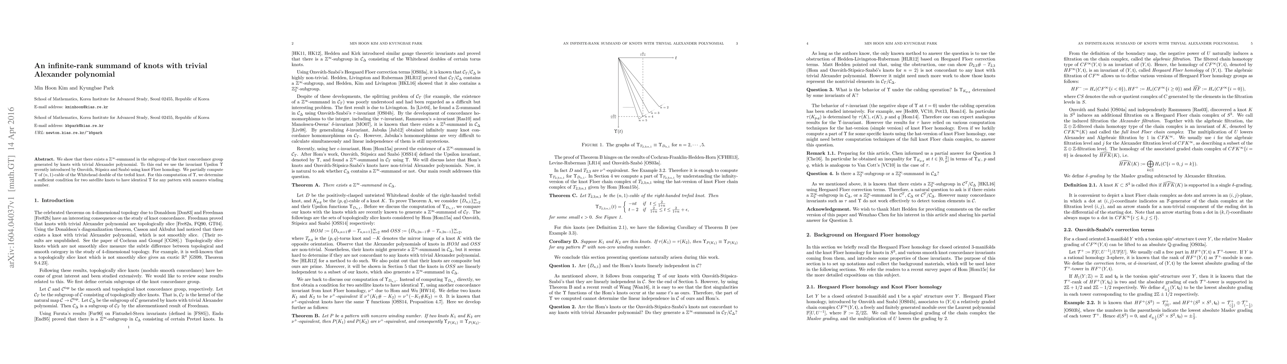Summary: The paper demonstrates the existence of an infinite-rank summand in the knot concordance group formed by knots with trivial Alexander polynomial, utilizing the invariant Upsilon derived from knot Floer homology. It also provides a condition for satellite knots to share the same Upsilon value.