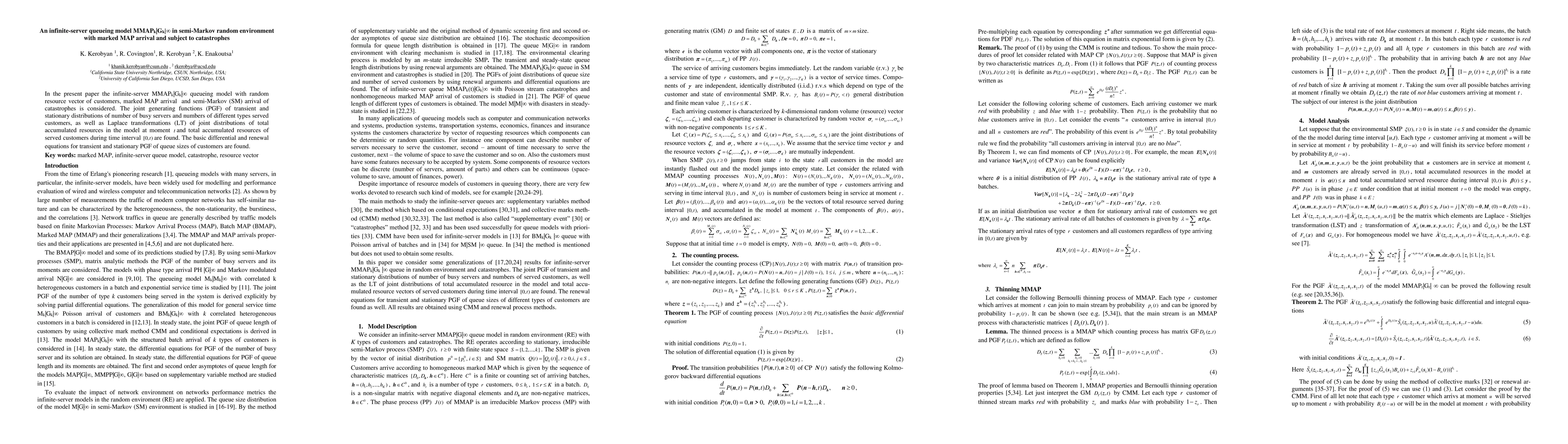 This paper investigates an infinite-server queueing model (MMAPkGk) under a semi-Markov environment with marked Markov arrival processes and semi-Markov arrival of catastrophes. It derives the joint generating functions and Laplace transformations for transient and stationary distributions of busy servers and served customers, along with differential and renewal equations for queue sizes.