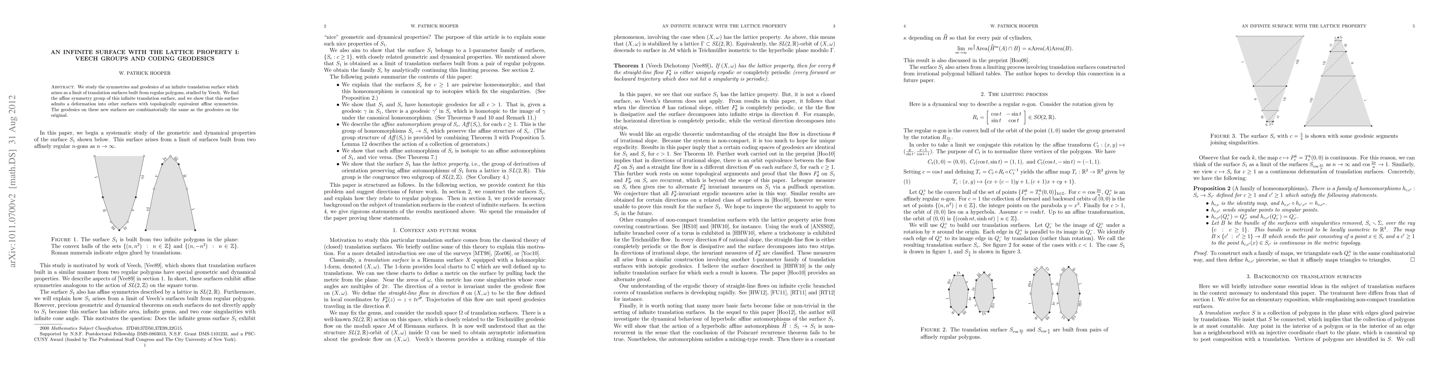 This paper investigates the symmetries and geodesics of an infinite translation surface derived from Veech groups, revealing its affine symmetry group and demonstrating its deformation into topologically equivalent surfaces while maintaining combinatorial geodesic structures.