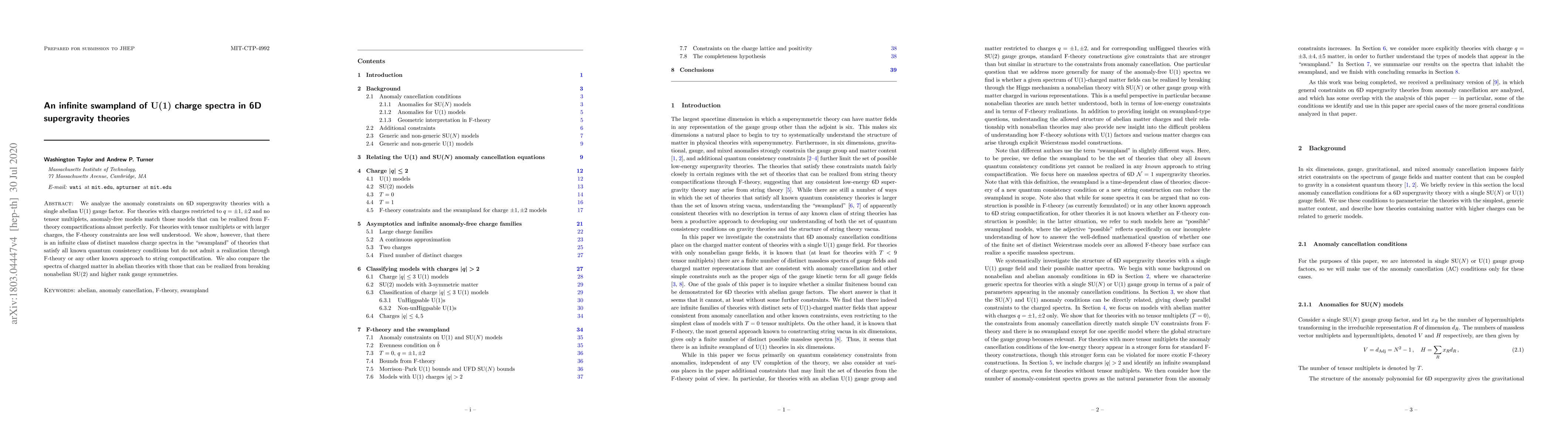 This paper explores anomaly constraints on 6D supergravity theories with a single U(1) gauge factor, revealing that only theories with charges limited to $q = \pm1, \pm2$ align with F-theory compactifications. It identifies an infinite "swampland" of distinct charge spectra satisfying quantum conditions but lacking realization via F-theory or other string compactification approaches.