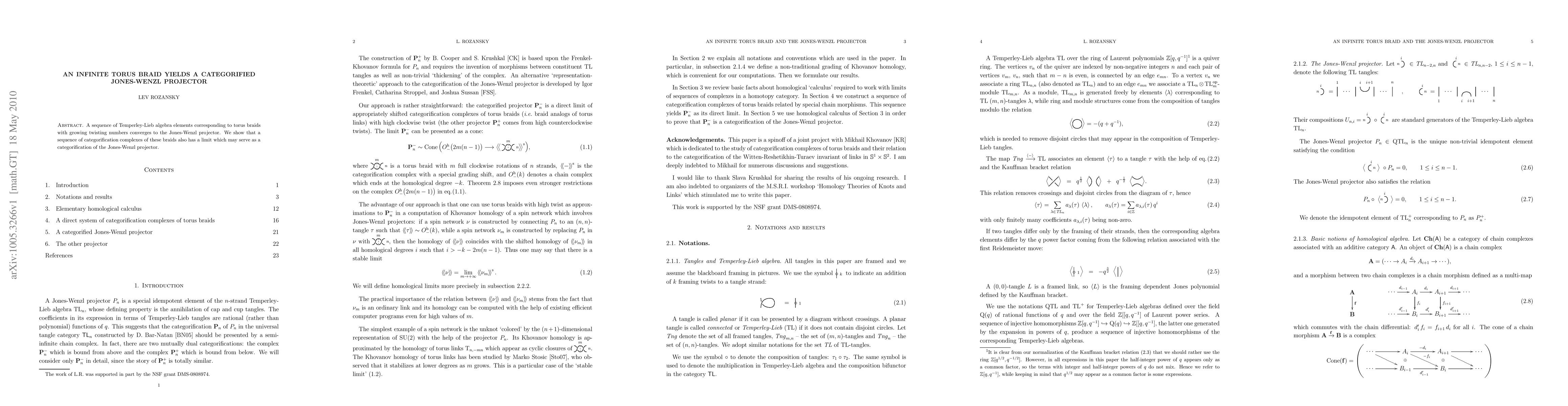 This paper demonstrates that an infinite torus braid sequence converges to the Jones-Wenzl projector, and further shows that a corresponding sequence of categorified complexes also converges, providing a categorification of the Jones-Wenzl projector.