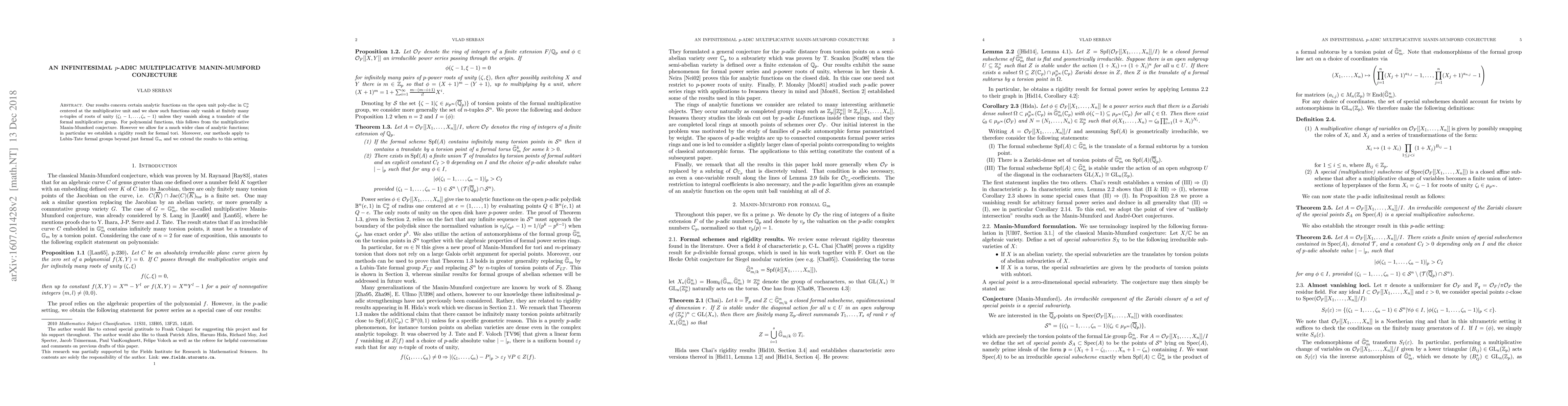The paper introduces a generalized infinitesimal $p$-adic multiplicative Manin-Mumford conjecture, extending the classical result to a broader class of analytic functions and formal groups.