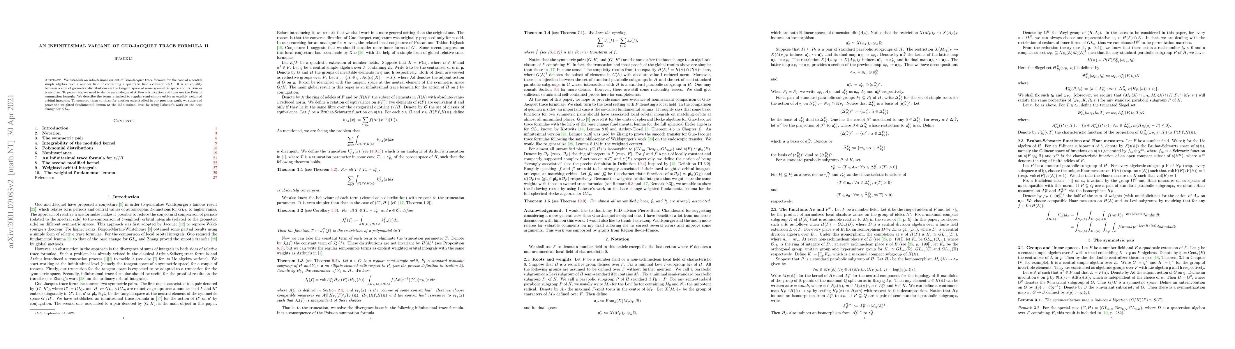 This paper develops an infinitesimal variant of the Guo-Jacquet trace formula for central simple algebras over number fields with quadratic extensions. It equates geometric distributions and their Fourier transforms, utilizing Arthur's truncation and the Poisson summation formula, and proves the weighted fundamental lemma by leveraging Labesse's work on base change for $GL_n$.