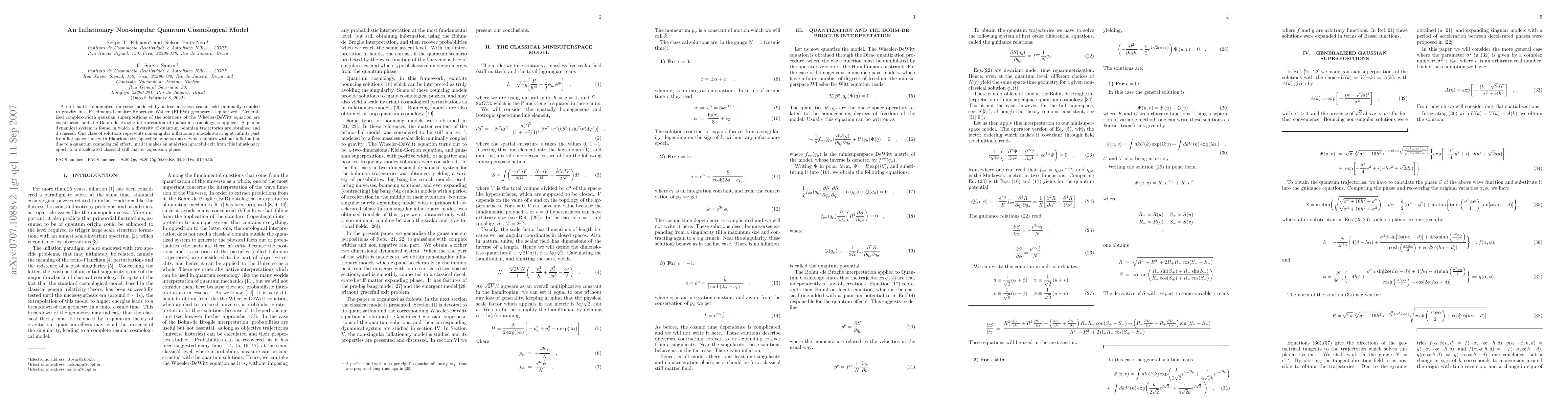 This paper quantizes a stiff matter-dominated universe using a free massless scalar field in a FLRW geometry, employing the Bohm-de Broglie interpretation to derive non-singular inflationary models. It finds that quantum cosmological effects can drive inflation without an inflaton field, leading to a graceful transition to a classical stiff matter expansion phase.