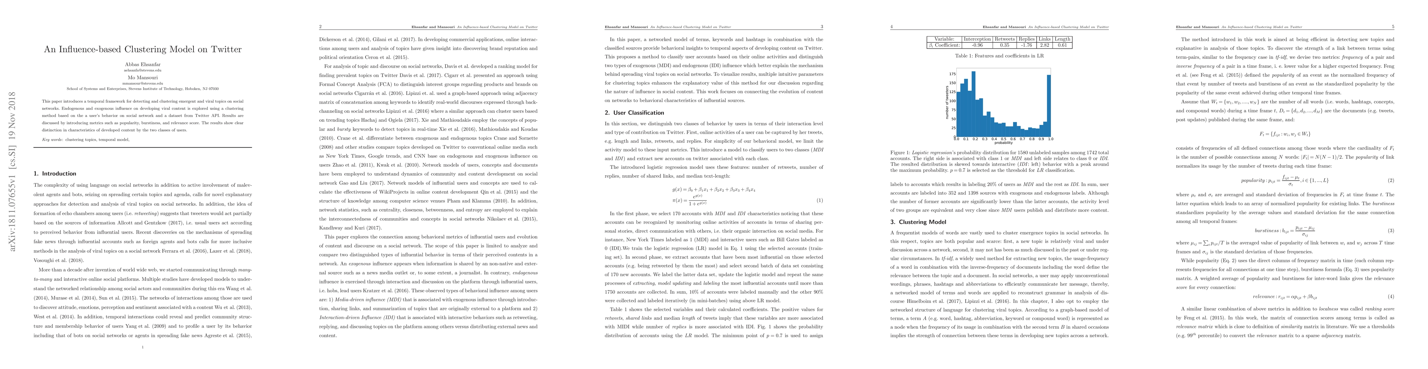 Researchers developed a clustering model to identify emerging topics on Twitter based on user behavior, exploring the influence of endogenous and exogenous factors on viral content.