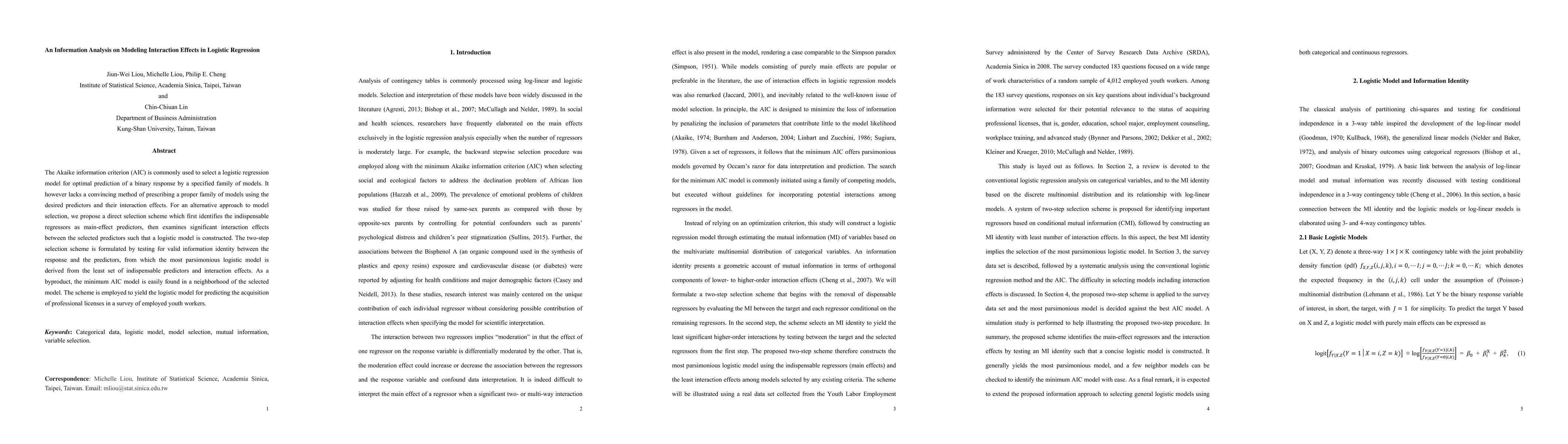 A new approach to selecting logistic regression models is proposed, which involves identifying main effect predictors and significant interaction effects to construct the most parsimonious model. This method is applied to predict professional license acquisition in a survey of employed youth workers.