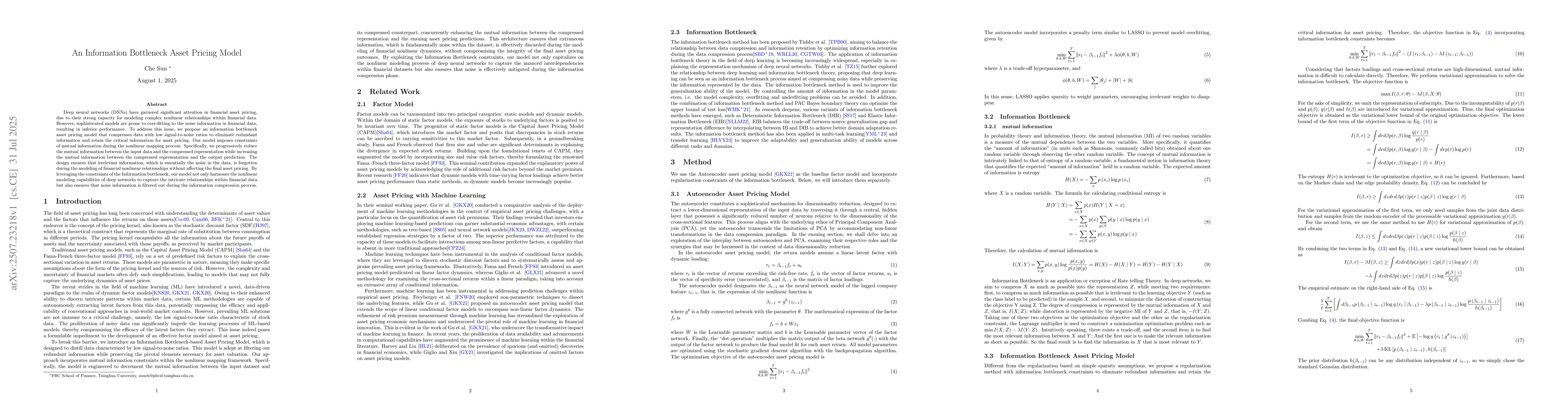 This work builds upon existing research in machine learning and information bottleneck theory to provide a new perspective on financial asset pricing, with potential applications in risk management and portfolio optimization.
