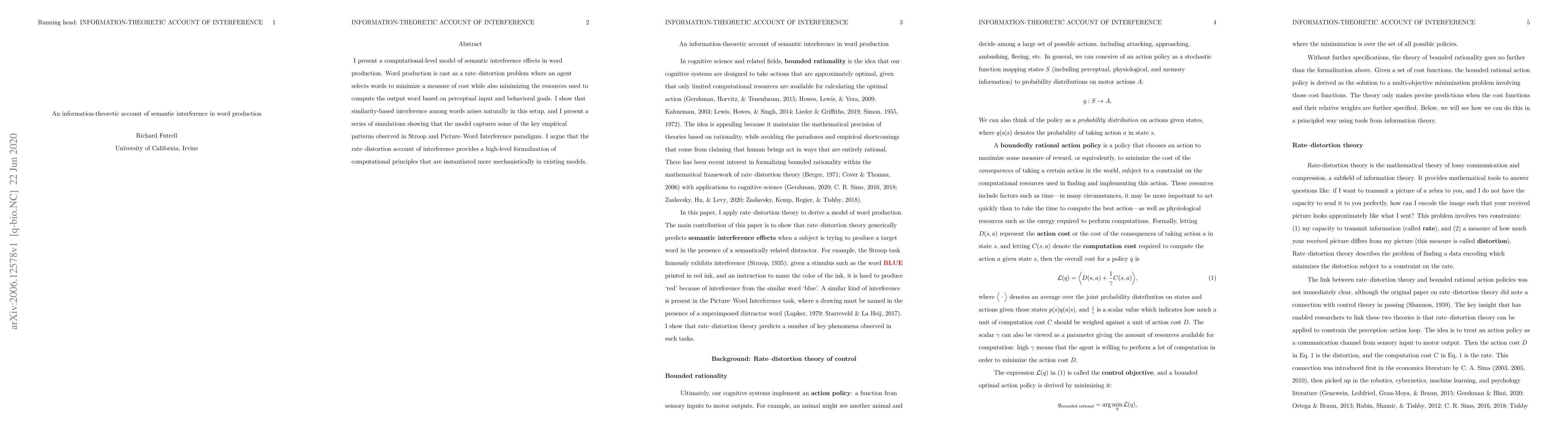 A new model explains how words interfere with each other when trying to be produced, showing that similarity leads to natural interference patterns. This 'rate-distortion' approach provides a high-level formalization of computational principles for word production.
