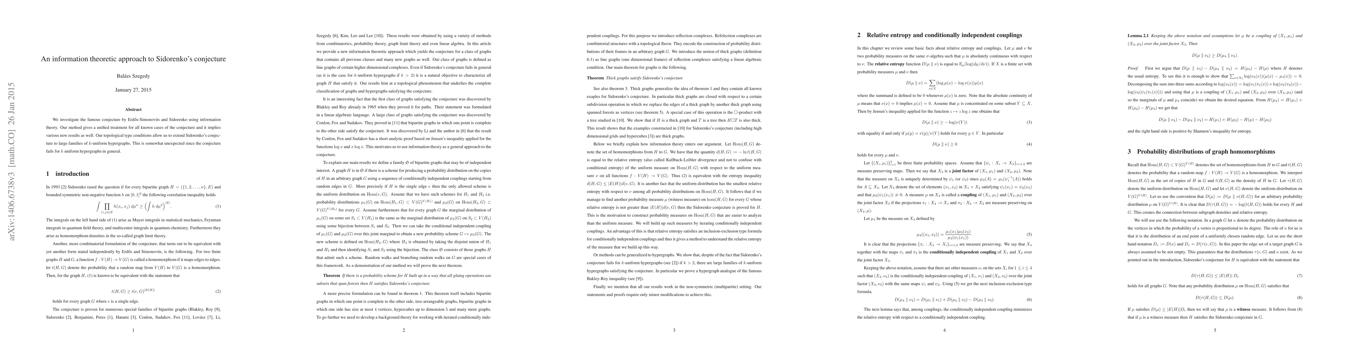 This paper uses information theory to explore Sidorenko's conjecture, providing a unified approach that extends the conjecture to large families of $k$-uniform hypergraphs, despite its general failure for such structures. The new results and topological conditions offer unexpected insights into the conjecture.