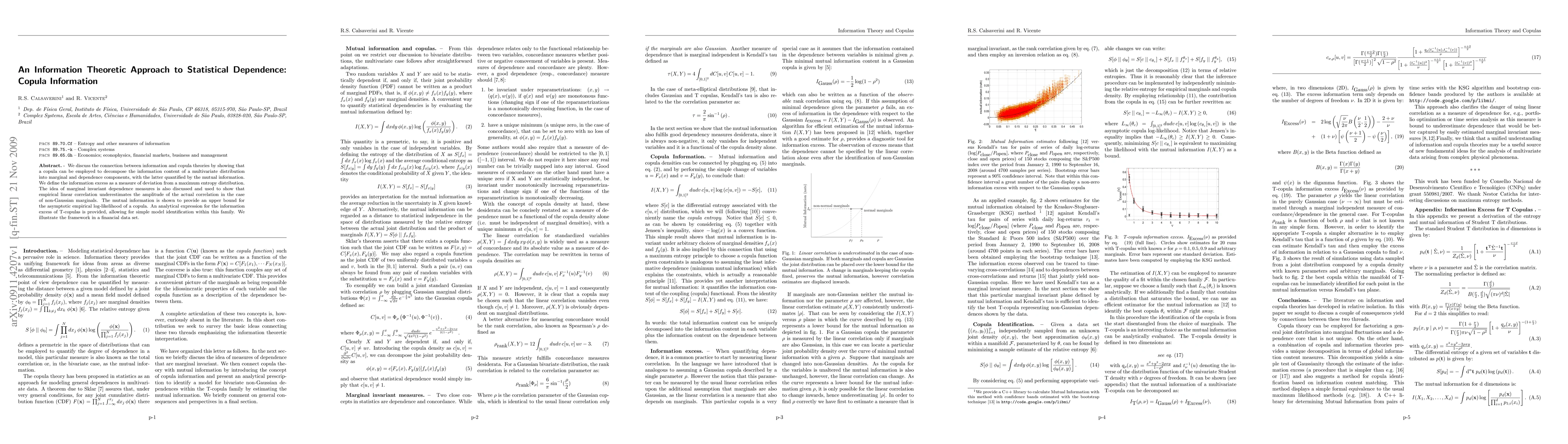 This paper connects information theory and copula theory to decompose multivariate distribution information into marginal and dependence components, with dependence quantified by mutual information. It introduces the information excess and demonstrates that linear correlation underestimates actual correlation for non-Gaussian marginals, while mutual information provides an upper bound for the empirical log-likelihood of a copula.