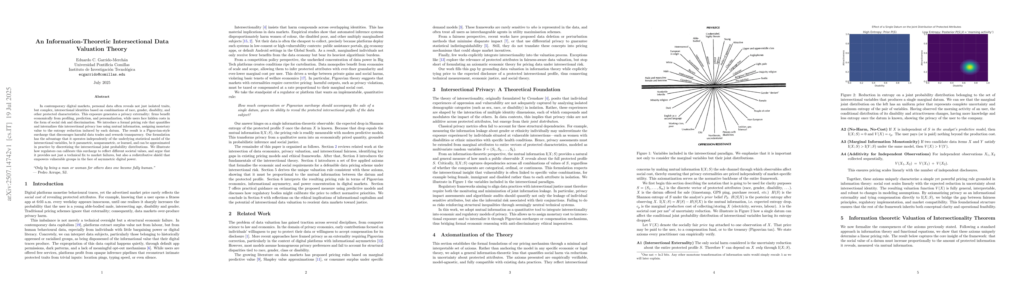 In contemporary digital markets, personal data often reveals not just isolated traits, but complex, intersectional identities based on combinations of race, gender, disability, and other protected characteristics. This exposure generates a privacy externality: firms benefit economically from profiling, prediction, and personalization, while users face hidden costs in the form of social risk and discrimination. We introduce a formal pricing rule that quantifies and internalizes this intersectional privacy loss using mutual information, assigning monetary value to the entropy reduction induced by each datum. The result is a Pigouvian-style surcharge that discourages harmful data trades and rewards transparency. Our formulation has the advantage that it operates independently of the underlying statistical model of the intersectional variables, be it parametric, nonparametric, or learned, and can be approximated in practice by discretizing the intersectional joint probability distributions. We illustrate how regulators can calibrate this surcharge to reflect different societal values, and argue that it provides not just a technical fix to market failures, but also a redistributive shield that empowers vulnerable groups in the face of asymmetric digital power.