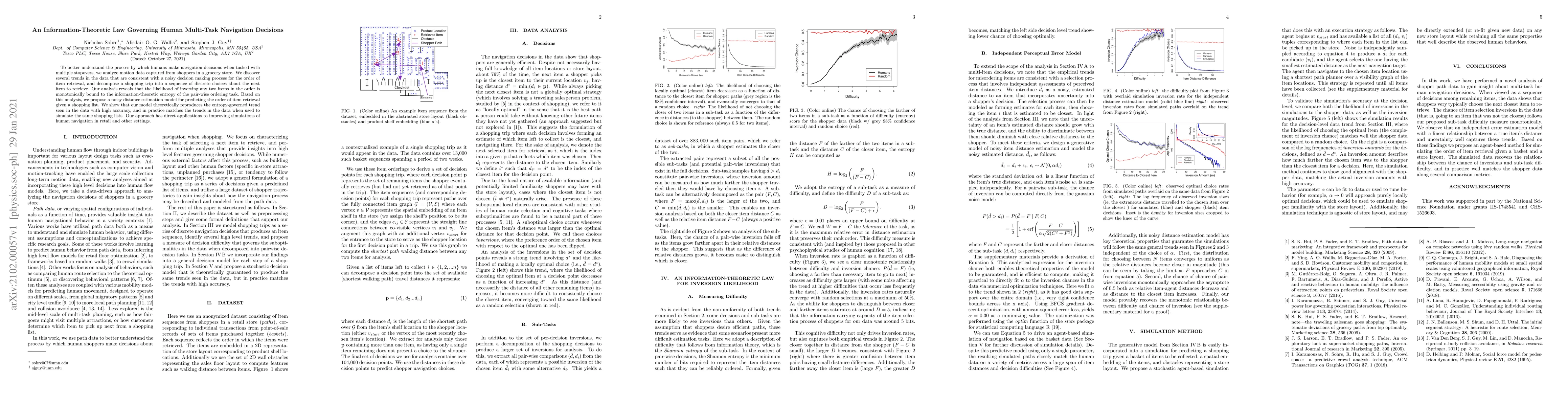 To better understand the process by which humans make navigation decisions when tasked with multiple stopovers, we analyze motion data captured from shoppers in a grocery store. We discover several trends in the data that are consistent with a noisy decision making process for the order of item retrieval, and decompose a shopping trip into a sequence of discrete choices about the next item to retrieve. Our analysis reveals that the likelihood of inverting any two items in the order is monotonically bound to the entropy of the pair-wise ordering task. Based on this analysis, we propose a noisy distance estimation model for predicting the order of item retrieval given a shopping list. We show that our model theoretically reproduces the entropy law seen in the data with high accuracy, and in practice matches the trends in the data when used to simulate the same shopping lists. Our approach has direct applications to improving simulations of human navigation in retail and other settings.