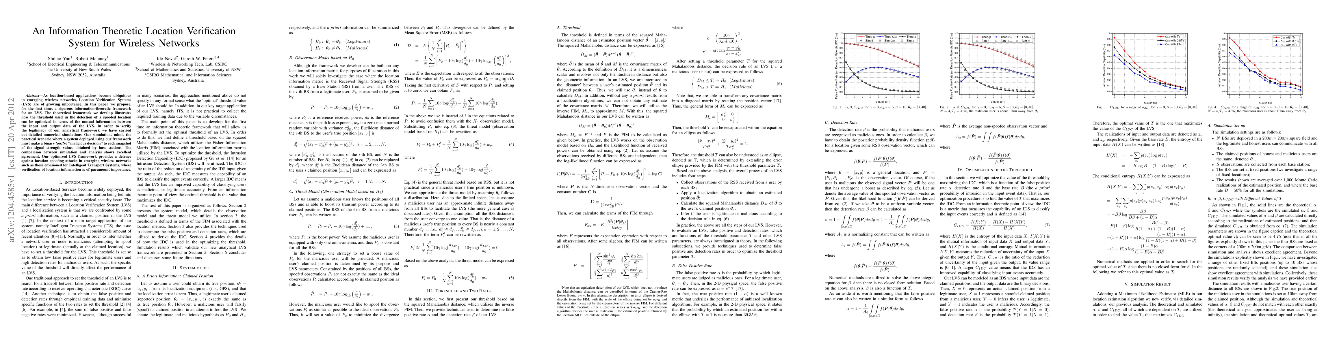 As location-based applications become ubiquitous in emerging wireless networks, Location Verification Systems (LVS) are of growing importance. In this paper we propose, for the first time, a rigorous information-theoretic framework for an LVS. The theoretical framework we develop illustrates how the threshold used in the detection of a spoofed location can be optimized in terms of the mutual information between the input and output data of the LVS. In order to verify the legitimacy of our analytical framework we have carried out detailed numerical simulations. Our simulations mimic the practical scenario where a system deployed using our framework must make a binary Yes/No "malicious decision" to each snapshot of the signal strength values obtained by base stations. The comparison between simulation and analysis shows excellent agreement. Our optimized LVS framework provides a defence against location spoofing attacks in emerging wireless networks such as those envisioned for Intelligent Transport Systems, where verification of location information is of paramount importance.