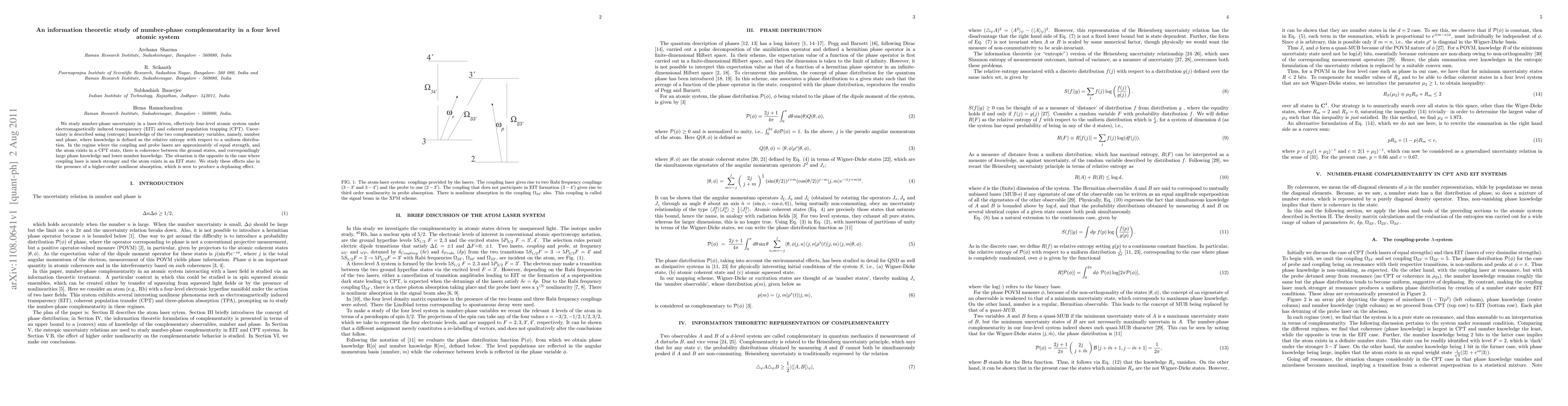 This work demonstrates the complementarity of number and phase in atomic systems, highlighting the importance of considering both aspects in quantum information processing and metrology.