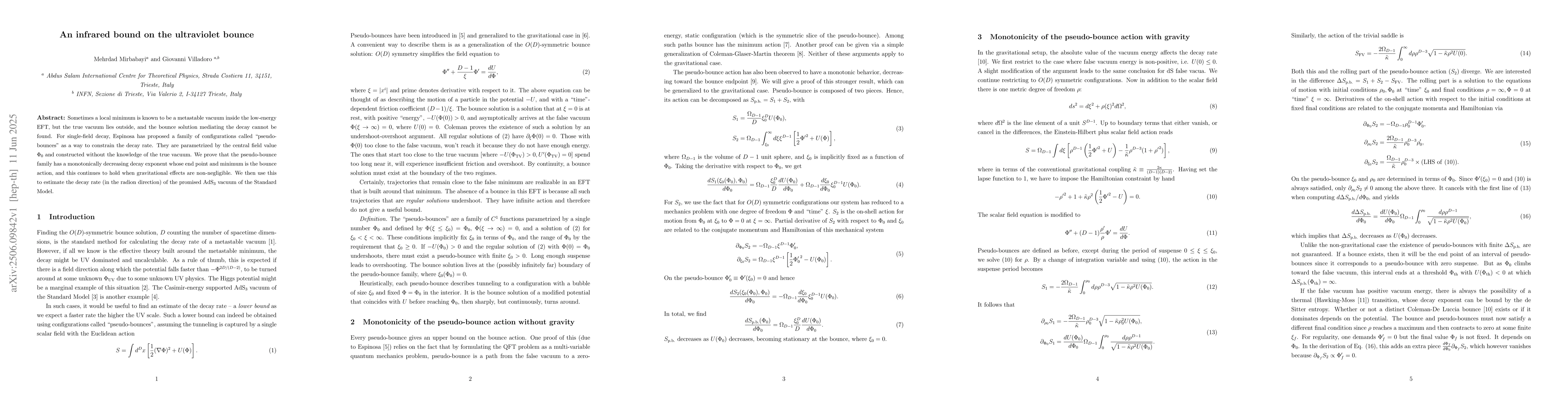 Sometimes a local minimum is known to be a metastable vacuum inside the low-energy EFT, but the true vacuum lies outside, and the bounce solution mediating the decay cannot be found. For single-field decay, Espinosa has proposed a family of configurations called ``pseudo-bounces'' as a way to constrain the decay rate. They are parametrized by the central field value $\Phi_0$ and constructed without the knowledge of the true vacuum. We prove that the pseudo-bounce family has a monotonically decreasing decay exponent whose end point and minimum is the bounce action, and this continues to hold when gravitational effects are non-negligible. We then use this to estimate the decay rate (in the radion direction) of the promised AdS$_3$ vacuum of the Standard Model.