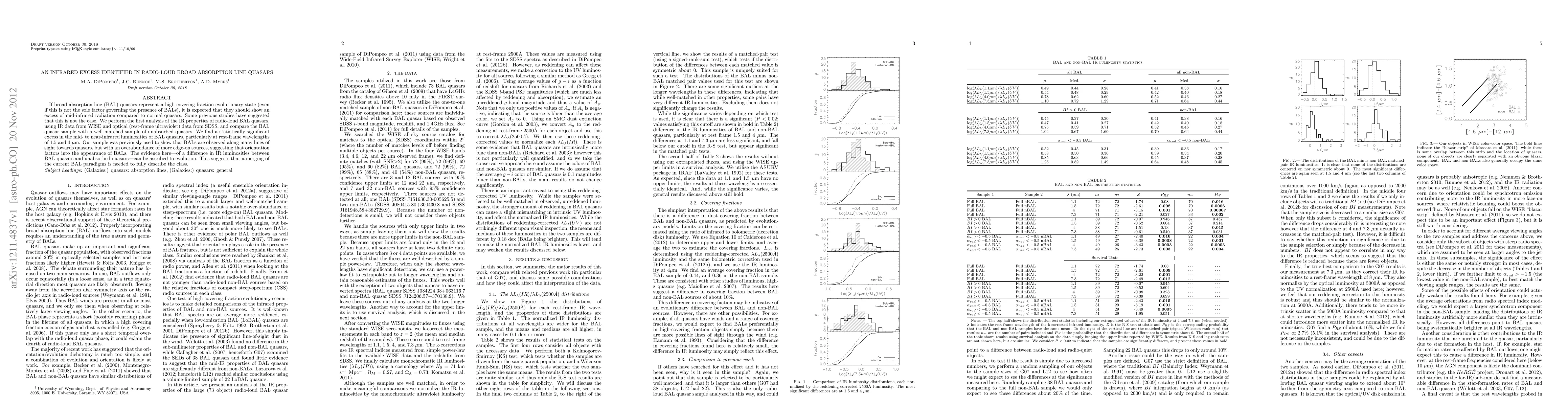 This study identifies a statistically significant excess in mid- to near-infrared luminosities of radio-loud broad absorption line (BAL) quasars compared to unabsorbed quasars, suggesting evolutionary differences. The findings imply a need to merge current BAL paradigms for a comprehensive understanding.