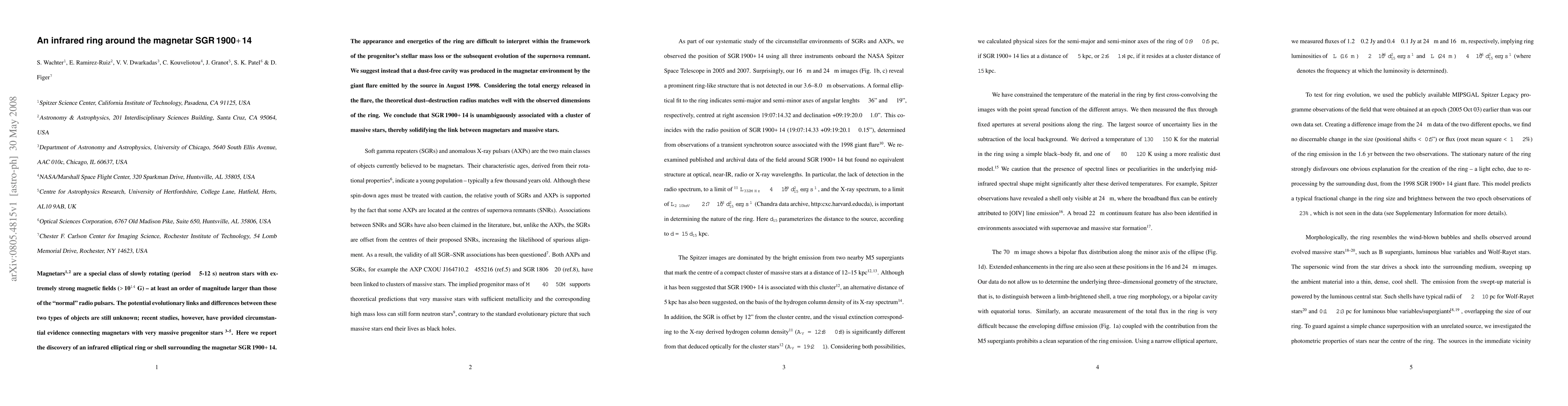 Astronomers have discovered an infrared ring surrounding magnetar SGR 1900+14, suggesting a dust-free cavity created by a massive flare in 1998, solidifying the link between magnetars and massive stars.
