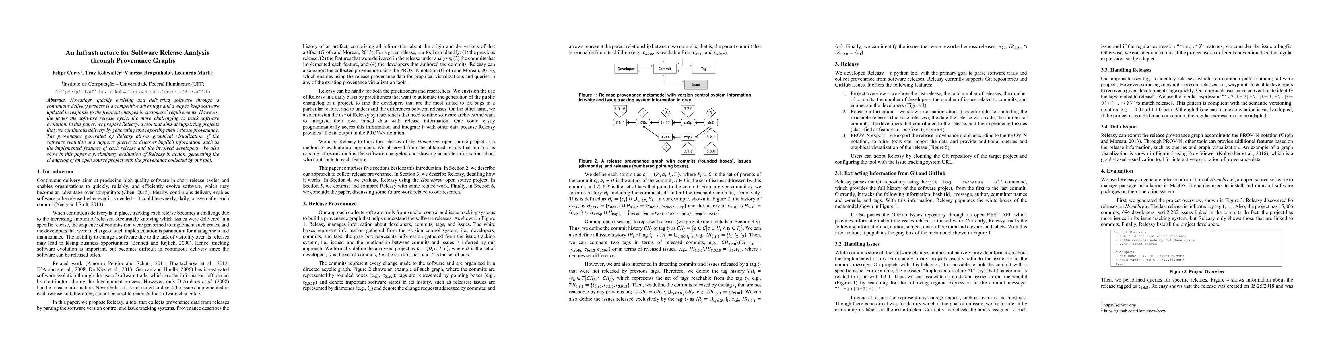 This paper introduces Releasy, a tool designed to support continuous delivery processes by generating and visualizing release provenance graphs. It enables projects to track software evolution, discover implemented features, and identify involved developers, with a preliminary evaluation on an open source project.