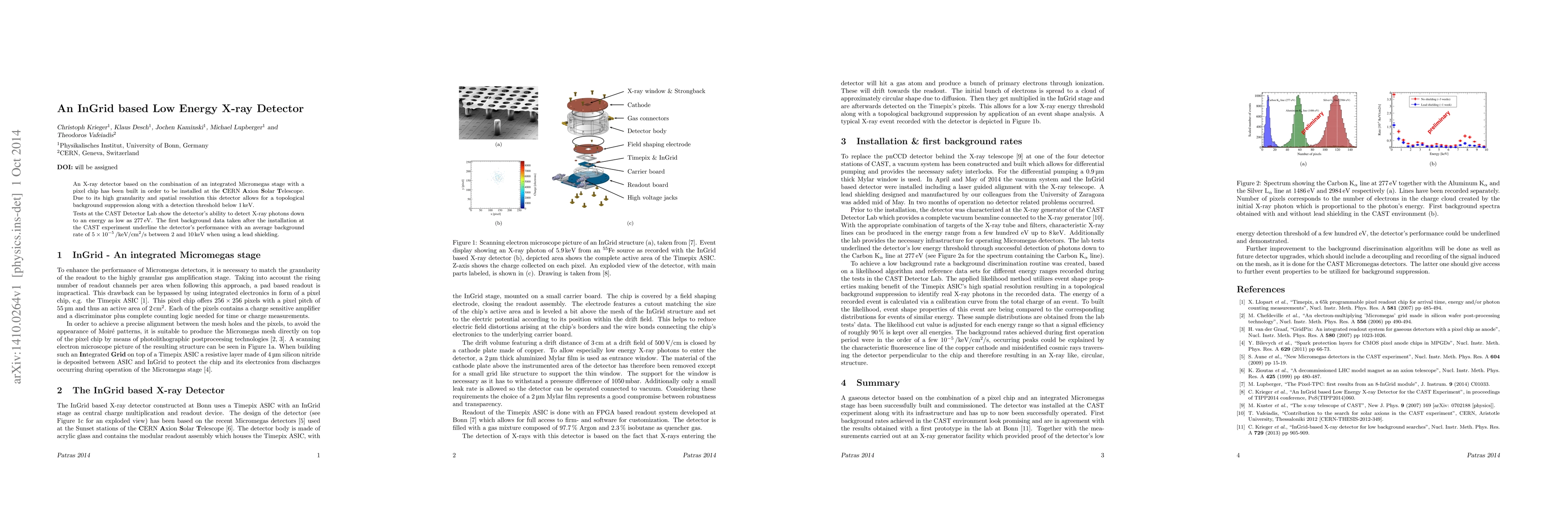 A new X-ray detector combining high granularity and spatial resolution has been developed to detect low-energy photons with an energy threshold as low as 277 eV. The detector's performance was successfully tested at the CAST experiment, showing an average background rate of $5 imes 10^{-5} / ext{keV}/ ext{cm}^2/ ext{s}$.