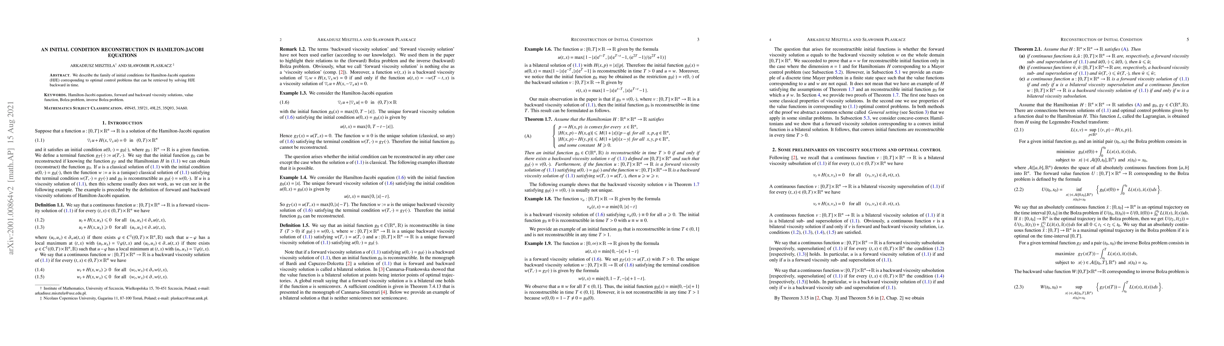 Summary: This paper reconstructs initial conditions for Hamilton-Jacobi equations (HJE) in optimal control problems by solving the HJE backward in time, providing a method to determine the starting points for optimal trajectories.
