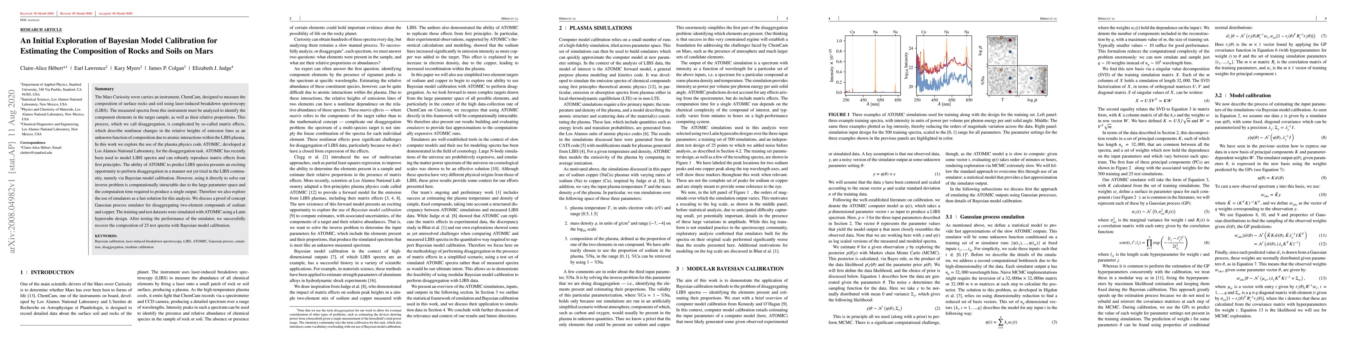 The Mars Curiosity rover carries an instrument, ChemCam, designed to measure the composition of surface rocks and soil using laser-induced breakdown spectroscopy (LIBS). The measured spectra from this instrument must be analyzed to identify the component elements in the target sample, as well as their relative proportions. This process, which we call disaggregation, is complicated by so-called matrix effects, which describe nonlinear changes in the relative heights of emission lines as an unknown function of composition due to atomic interactions within the LIBS plasma. In this work we explore the use of the plasma physics code ATOMIC, developed at Los Alamos National Laboratory, for the disaggregation task. ATOMIC has recently been used to model LIBS spectra and can robustly reproduce matrix effects from first principles. The ability of ATOMIC to predict LIBS spectra presents an exciting opportunity to perform disaggregation in a manner not yet tried in the LIBS community, namely via Bayesian model calibration. However, using it directly to solve our inverse problem is computationally intractable due to the large parameter space and the computation time required to produce a single output. Therefore we also explore the use of emulators as a fast solution for this analysis. We discuss a proof of concept Gaussian process emulator for disaggregating two-element compounds of sodium and copper. The training and test datasets were simulated with ATOMIC using a Latin hypercube design. After testing the performance of the emulator, we successfully recover the composition of 25 test spectra with Bayesian model calibration.