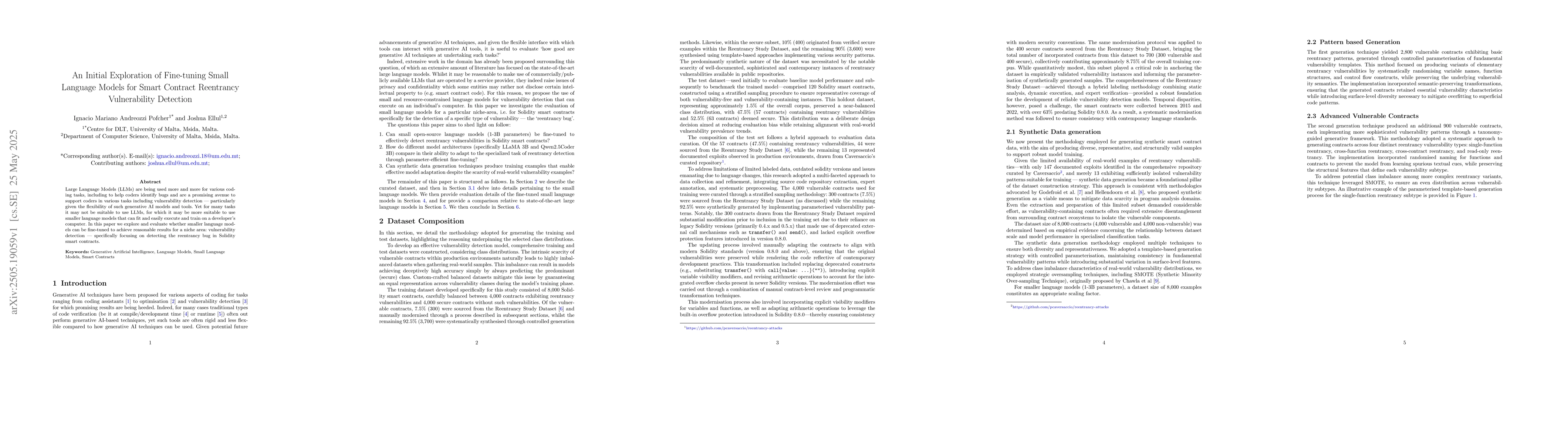 Researchers explore using smaller language models to detect reentrancy bugs in smart contracts, finding they can achieve reasonable results with fine-tuning.