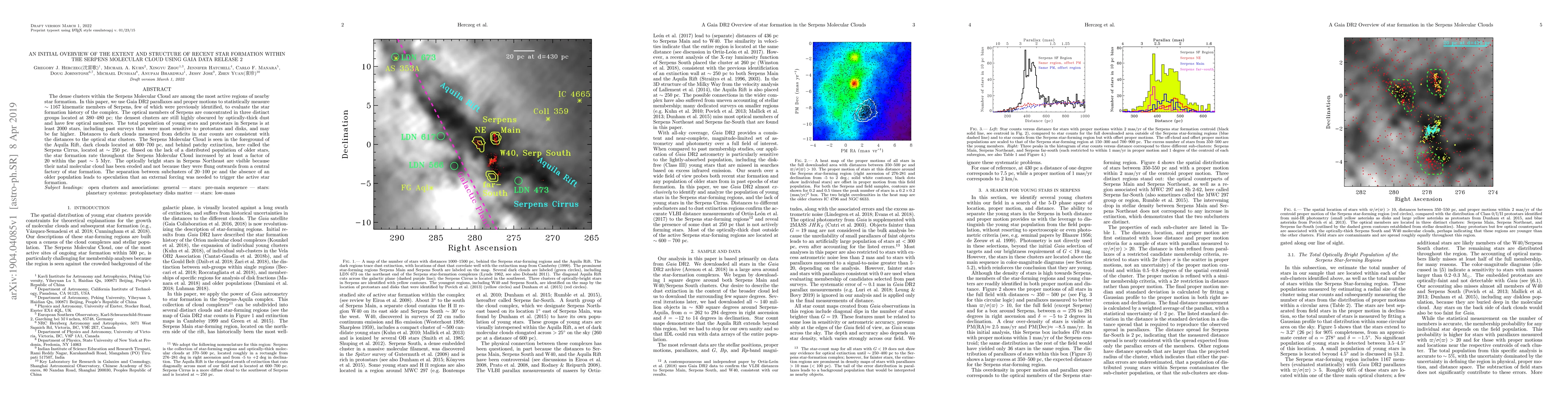 This paper uses Gaia DR2 data to identify 1167 kinematic members of the Serpens Molecular Cloud, revealing a significant increase in star formation over the past 5 million years. The cloud is divided into three groups, with the densest clusters obscured by dust, suggesting an external trigger for the recent star formation surge.