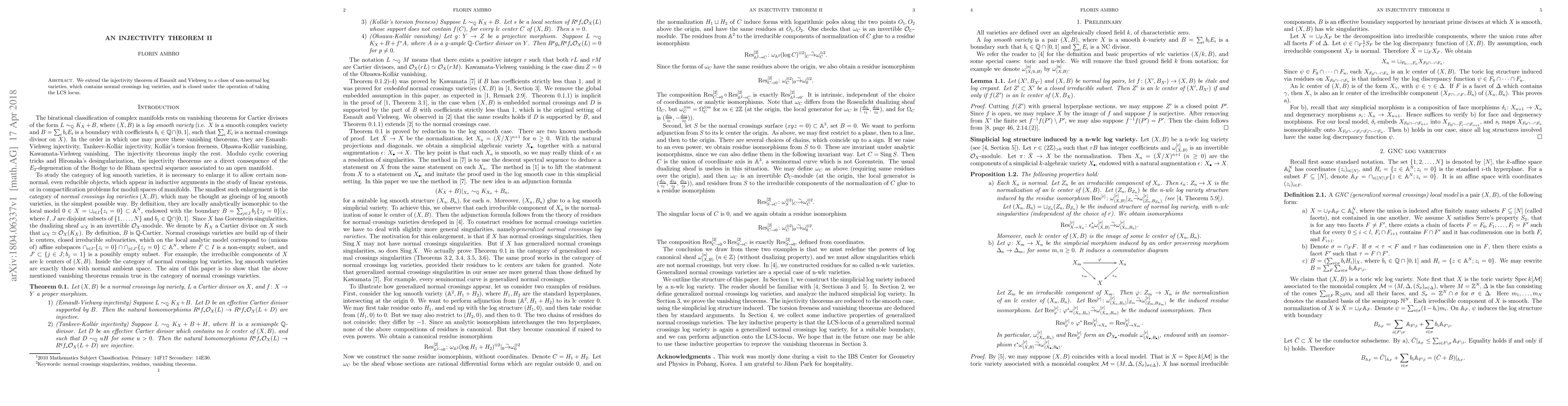 We extend the injectivity theorem of Esnault and Viehweg to a class of non-normal log varieties, which contains normal crossings log varieties, and is closed under the operation of taking the $\LCS$ locus.