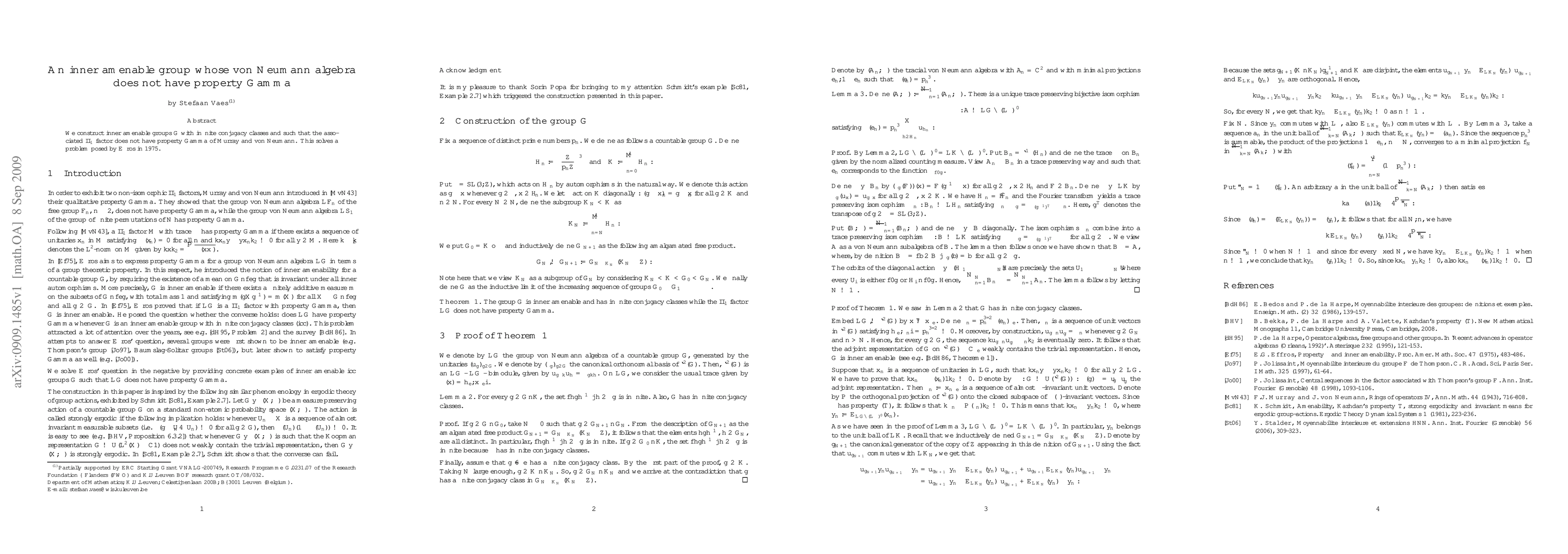 Researchers have constructed a class of inner amenable groups whose associated von Neumann algebras do not possess property Gamma, resolving a problem posed in 1975 by Effros.