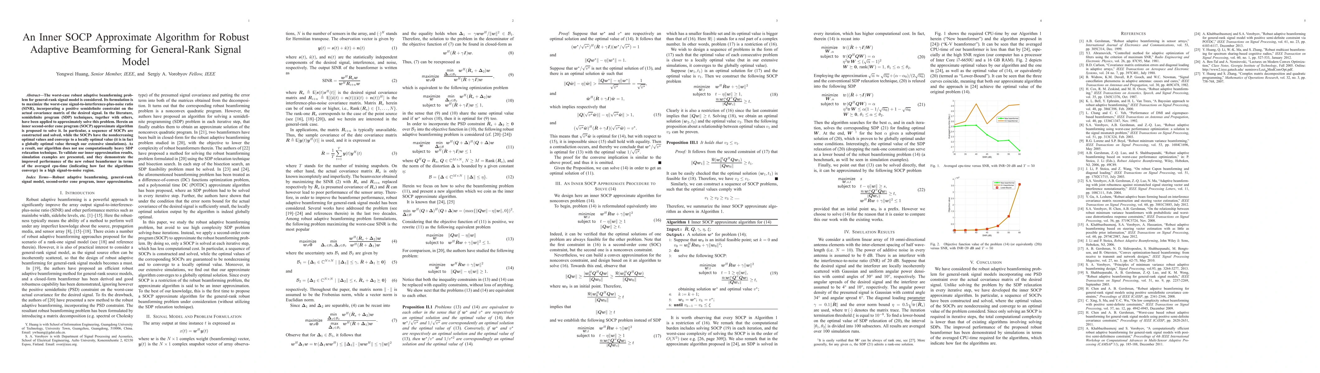 This paper proposes an inner second-order cone program (SOCP) approximate algorithm for solving the robust adaptive beamforming problem under a general-rank signal model. The algorithm iteratively solves a sequence of SOCPs that converge to a locally optimal solution, demonstrating superior performance in terms of convergence speed compared to traditional semidefinite program (SDP) techniques.