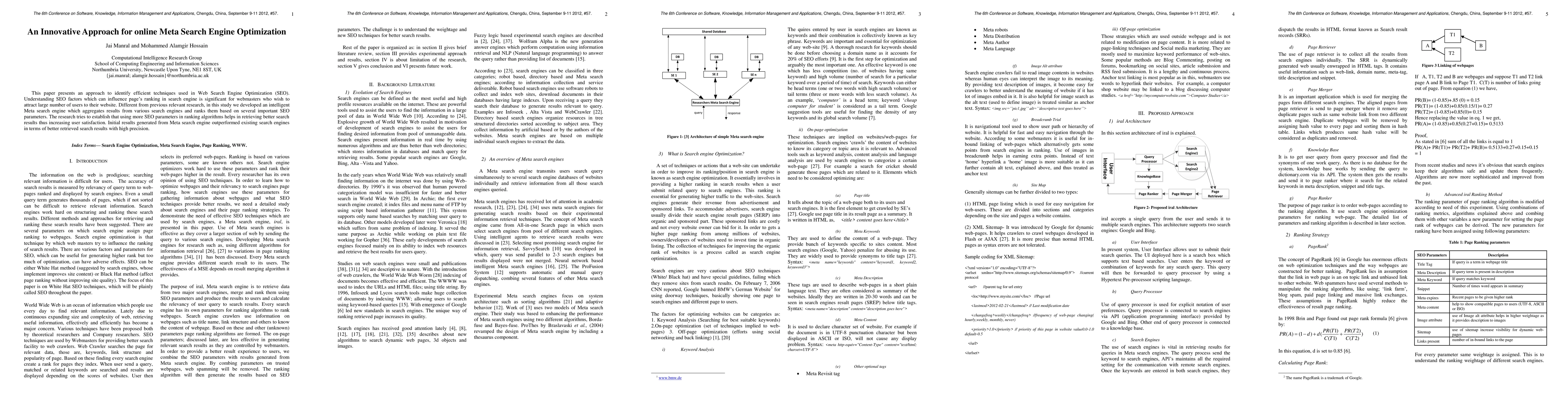 This paper introduces an innovative Meta search engine that aggregates and ranks results from various search engines based on multiple SEO parameters, demonstrating improved search result precision and user satisfaction over existing search engines. Initial results show superior performance in retrieving better search results.
