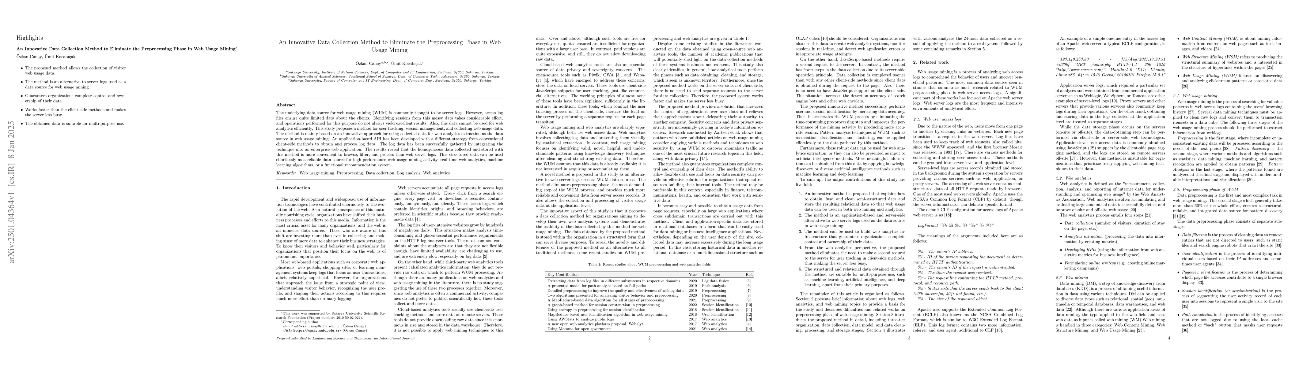This paper introduces an innovative data collection method for web usage mining that eliminates the preprocessing phase by using an application-based API to gather structured data directly from an enterprise web application, offering a more efficient alternative to traditional server logs for web analytics and session management.
