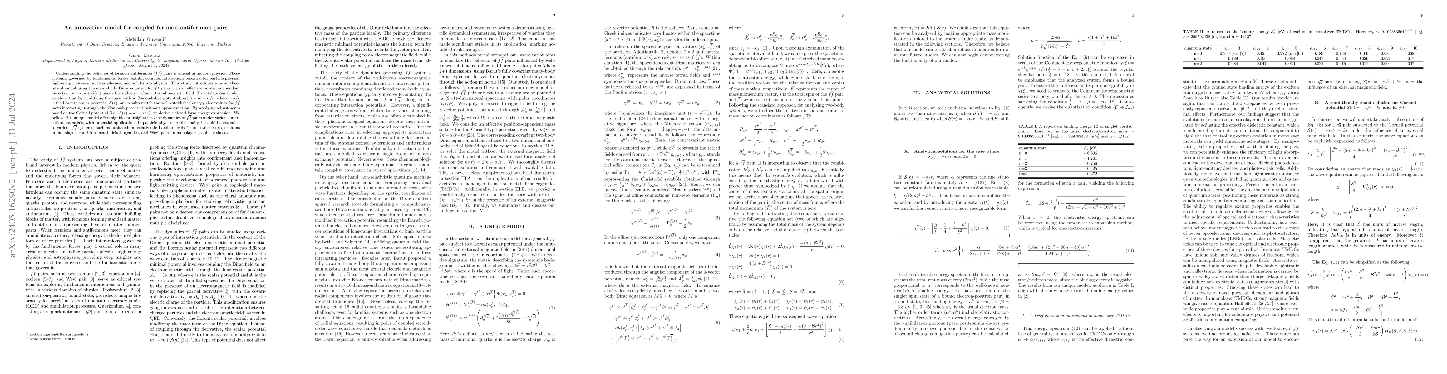 This paper proposes a novel theoretical model using the many-body Dirac equation with a position-dependent mass to study quark-antiquark systems, showing precise alignment with known energy eigenvalues for fermion-antifermion pairs under a Coulomb potential. The model also provides a closed-form energy spectrum for quarkonium in magnetic fields, potentially offering insights into various fermion-antifermion systems.