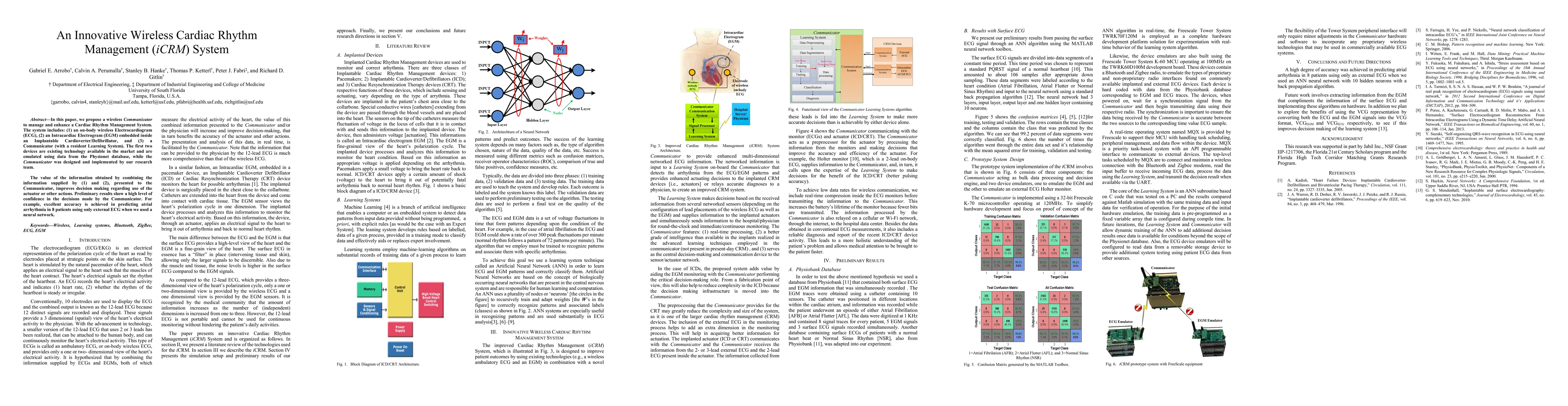 Researchers developed a wireless system to improve Cardiac Rhythm Management by combining ECG and Implantable Cardioverter/Defibrillator data for better decision-making.