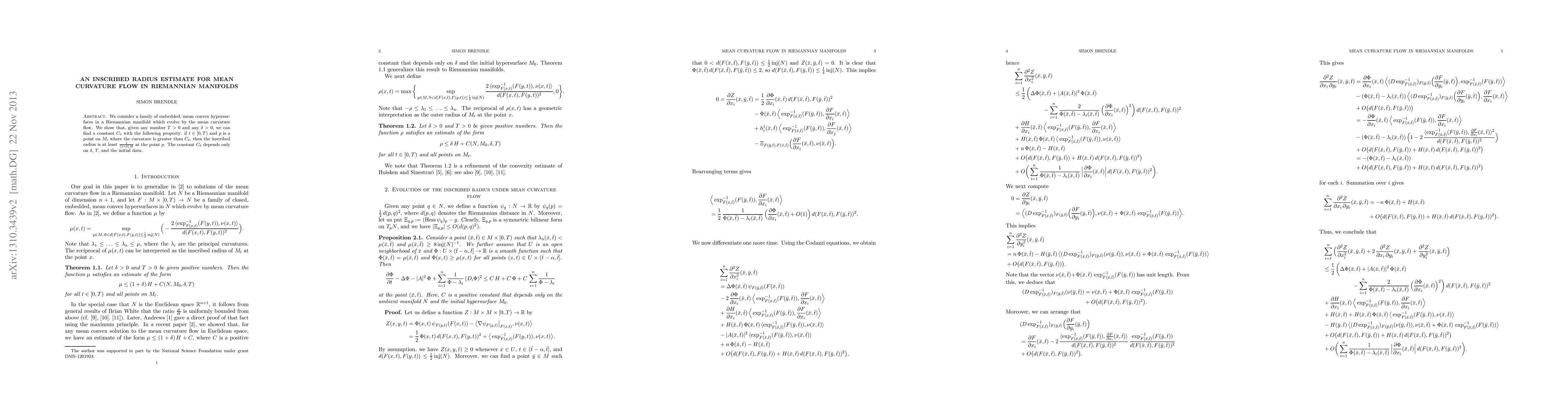 We consider a family of embedded, mean convex hypersurfaces in a Riemannian manifold which evolve by the mean curvature flow. We show that, given any number $T>0$ and any $\delta>0$, we can find a constant $C_0$ with the following property: if $t \in [0,T)$ and $p$ is a point on $M_t$ where the curvature is greater than $C_0$, then the inscribed radius is at least $\frac{1}{(1+\delta) \, H}$ at the point $p$. The constant $C_0$ depends only on $\delta$, $T$, and the initial data.